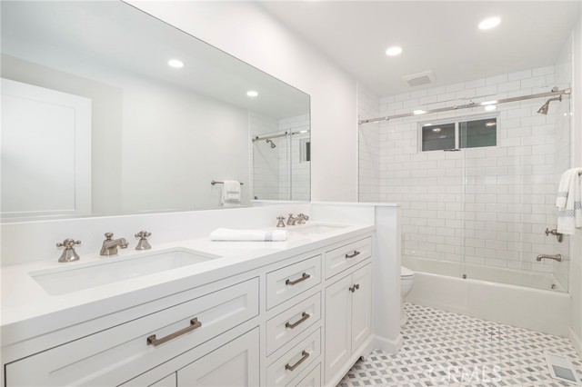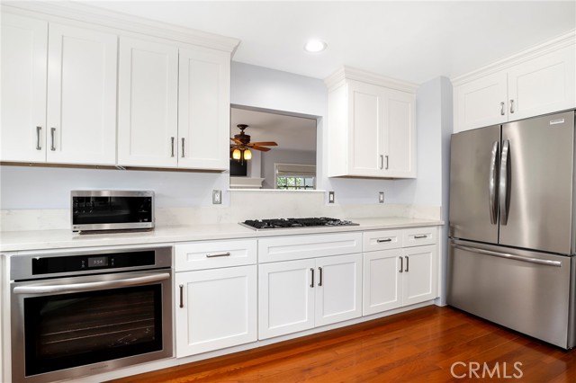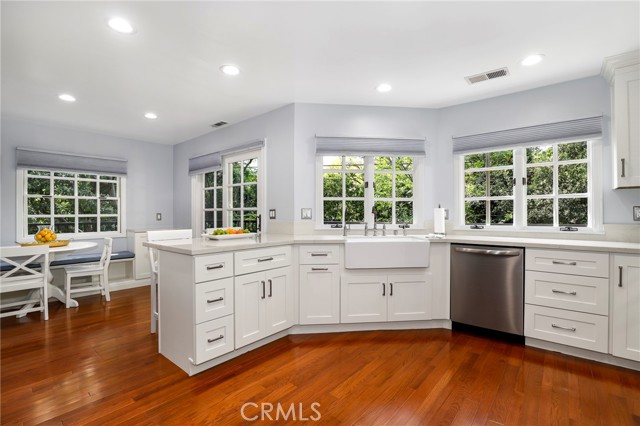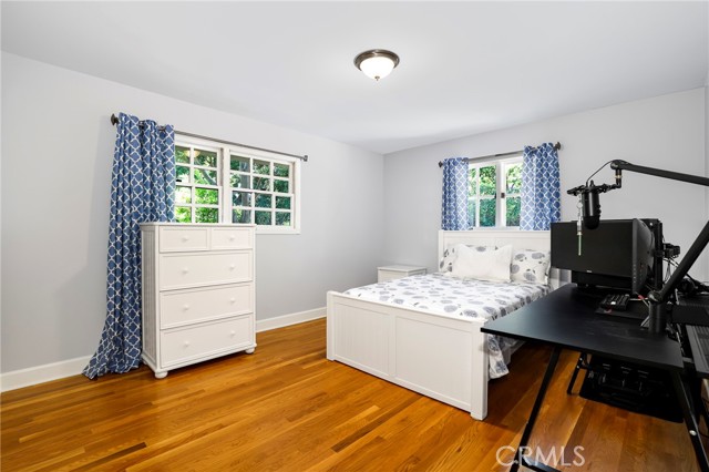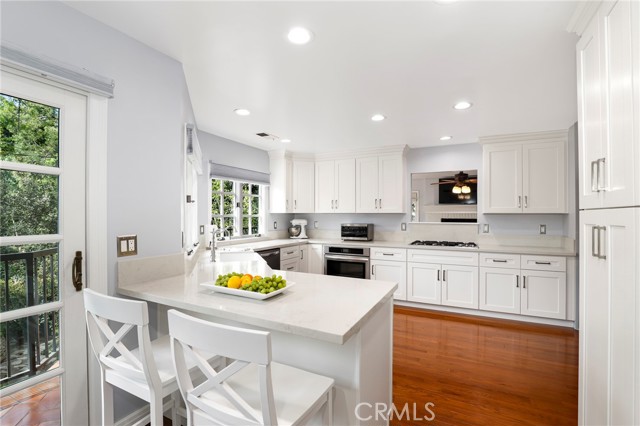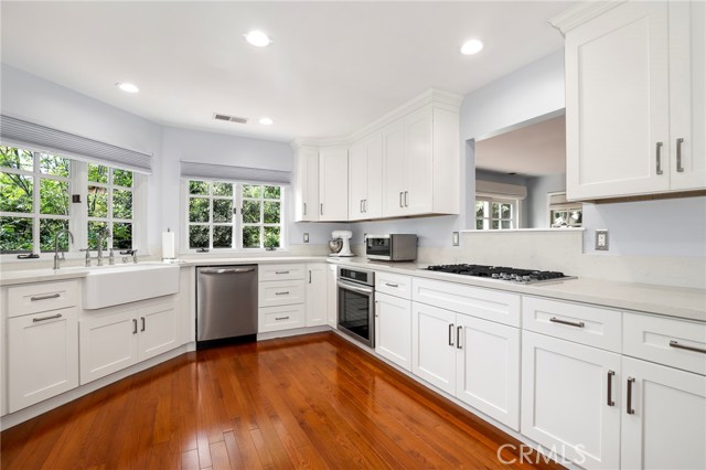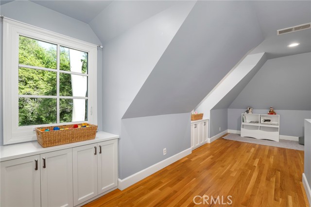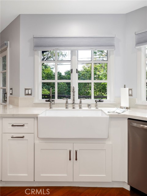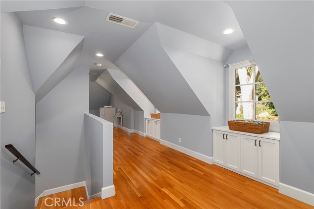 Traditional-style home built in 1987, located on a quiet cul-de-sac in Pasadena s desirable San Rafael Hills. Fully renovated over two years with high-end materials, including new hardwood floors, custom cabinetry, and solid wood interior doors. The remodeled kitchen features custom cabinetry, marble-look quartz countertops, a farm-style sink with nickel hardware, stainless steel appliances, and built-in pantry storage. A charming breakfast nook includes built-in benches, bookcases, cubbies, and French doors with remote control blackout blinds that lead to a backyard balcony. The home offers 5 bedrooms (2 en-suite) and 5 bathrooms all renovated with custom cabinetry, marble-look quartz surfaces, glass shower enclosures, and California Faucets with satin nickel hardware. The family room boasts a brick fireplace and French doors with remote control blackout blinds. A nearby guest bath includes a custom vanity, marble-look quartz countertop, and wainscoting. The mudroom leads to a 2-car attached garage with direct home entry and includes storage cabinetry with a utility closet, coat hooks, cubbies, bench, and a quartz countertop. On the lower level you ll find the primary en-suite bedroom (with private entrance) featuring a marble fireplace and a spa-like bathroom with marble mosaic floors, oversized shower with showerhead and handheld spray combo, and a custom 8.5 foot double sink vanity. Also, on the lower level are three more bedrooms and two fully renovated bathrooms, a laundry room with built-in cabinetry, a large storage room, and easy access to the side yard. Upstairs you will find an additional private en-suite bedroom with full bath and two closets. Upon entering, there s a large bonus room with built-in cabinets under each dormer window. This space is ideal as a playroom, den, office or game room. The open-concept layout includes a living room with high ceilings and a fireplace, a formal dining room with French doors to a wraparound balcony, and family room with views of the expansive backyard with trees, a small stream, and large grassy area. The side yard includes a gated enclosed space. Extras include fully paid off solar panels, paid off water filtration and water softening systems, recessed lighting throughout, California faucets plumbing fixtures, a 3 zone HVAC system and an electric vehicle charger outlet in the garage. Minutes to Old Town Pasadena, the Rose Bowl, Arroyo Seco, Eagle Rock, Highland Park, Dodger Stadium and Downtown LA.Interested in this Listing?
