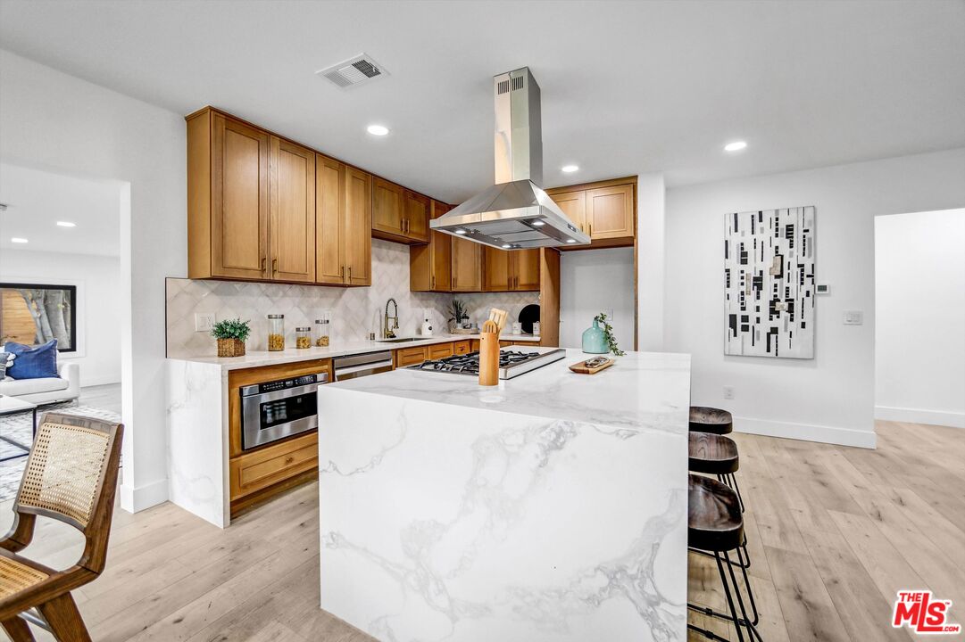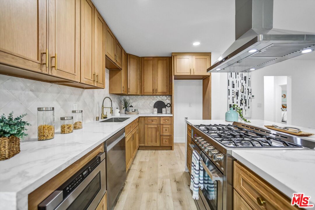 Nestled on a quiet, tree-lined street in one of Pasadena's most peaceful neighborhoods, this beautifully updated single-story home blends timeless charm with modern comfort. Mature trees frame both the front and back yards, providing a lush, tranquil setting with plenty of natural light throughout. Enter into a bright, open-concept layout where the spacious living, dining, and kitchen areas flow together seamlessly, anchored by a sleek fireplace that invites cozy evenings at home. The standout kitchen features a dramatic waterfall island with breakfast bar and pop-up charging stations, premium appliances, abundant cabinetry, and generous counter space, making everyday cooking and entertaining a delight. The expansive living area easily accommodates a large sectional and media setup, with extra room for a reading nook or creative workspace. From here, exit directly out to the private, fenced backyard perfect for outdoor dining, relaxing under the trees, or hosting gatherings with friends and family. The flexible floor plan features two primary suites: one with a walk-in closet, double vanity, and spacious double shower, and the other offering dual closets, peaceful backyard views, and an en-suite bath with a step-in shower. A third bedroom and additional bathroom add versatility for guests, family, or a home office. Thoughtfully remodeled with stylish finishes throughout, this inviting home sits on a generous lot with ample parking, including gated and secure parking for up to four cars, as well as a convenient storage shed, providing comfort, flexibility, and extra outdoor possibilities. There's also potential to add an ADU (Accessory Dwelling Unit) for multigenerational living or rental income. Enjoy this move-in-ready gem near Eaton Canyon, scenic trails, parks, shops, dining, and the Metro Gold Line, the perfect blend of modern living in a desirable Pasadena location.Interested in this Listing?