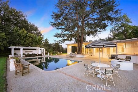 Welcome to this remarkable mid-century modern estate designed by H. Roy Kelley, meticulously remodeled and expanded between 2014 and 2018, this home seamlessly merges iconic architectural charm with modern luxury, offering a sophisticated retreat near the prestigious Langham Hotel. The interior boasts premium finishes and materials, including stone and hardwood flooring, floor-to-ceiling windows, skylights, and a striking fireplace that anchors the living space. The chef's kitchen is equipped with state-of-the-art appliances, featuring a Sub-Zero refrigerator, Bosch range, Oven, microwave and dishwasher, delivering both style and functionality for culinary enthusiasts. Set on impeccably landscaped grounds, the estate offers a wealth of outdoor amenities. Enjoy a resurfaced tennis court, a sparkling pool, a spa, a built-in BBQ bar, and lush, mature plantings that create a serene environment for relaxation and entertaining. The luxurious primary suite serves as a private sanctuary, complete with a secluded deck and its own in-ground spa, perfect for unwinding after a long day. This one-of-a-kind property represents the pinnacle of mid-century modern design, enhanced with contemporary upgrades and situated in a highly coveted location. Don t miss the chance to own this architectural gem!Interested in this Listing?