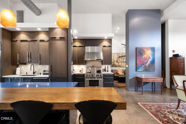 Welcome to the coveted Dayton Library Hall Lofts in the heart of Old Town Pasadena. This loft captures the essence of modern industrial living with its high, exposed ceilings, polished concrete floors, and oversized windows offering striking city views. Clean lines and custom German Siematic cabinetry provide a sleek, minimalist aesthetic with smart, functional storage throughout. At the heart of the home is a spacious, open-concept kitchen featuring stainless steel appliances, an integrated dishwasher, and a wine fridge built into an expansive island. A custom cantilevered wood extension on the island adds warmth and casual seating space, making it perfect for everyday living or informal gatherings. Flowing seamlessly from the kitchen is a light-filled flexible family room area, ideal for relaxing or entertaining. Around the home, distinct spaces offer endless possibilities--whether you need a den, a home office, or creative studio. One of these areas includes a 3/4 bathroom and opens to a charming private patio, while a dedicated workspace sits conveniently near a laundry room with additional storage. The bedroom is a peaceful retreat, filled with natural light and featuring an en suite bathroom and closet. Thoughtfully designed and effortlessly cool, this loft is a standout example of industrial-modern living in one of Pasadena's most vibrant neighborhoods.Interested in this Listing?