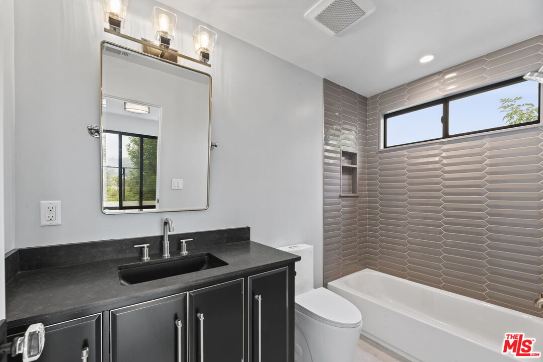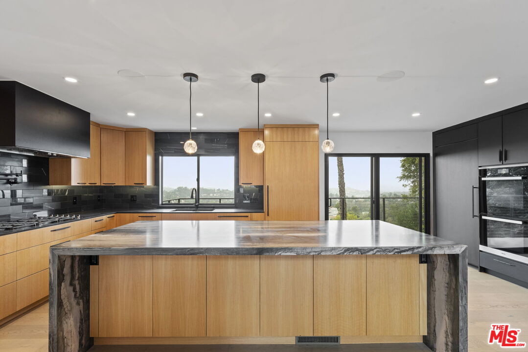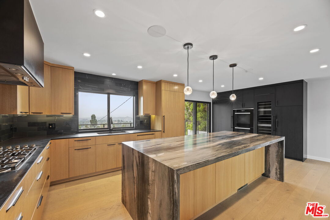 Perched in the San Rafael Hills, this reinvented 1948 modern home delivers space, style, and panoramic viewsstretching from Downtown LA to the San Gabriels. Fully renovated in 2021, it spans over 4,000 square feet with 5 bedrooms and 6 baths, including four en-suites and three with private balconies overlooking the city. The main floor is bold and open, featuring dramatic 20-foot ceilings, a statement wet bar, and a guest suite. The kitchen is built to host, with premium appliances, a wine fridge, and an oversized waterfall island offering plenty of storage and seating. Upstairs, the primary suite feels like a retreat with a spa-style bath and a fully built-out closet. Downstairs adds flexibility with a large family room, dry bar, direct yard access, and a bonus bedroom that works perfectly as a gym or office. There's even a dedicated dog-wash area. The outdoor space continues the vibe with a large view deck, terraced gardens, a bocce court, and extra storage. All just minutes from the Rose Bowl, Highland Park, Eagle Rock, Old Town Pasadena, and downtown. This is California living elevated.