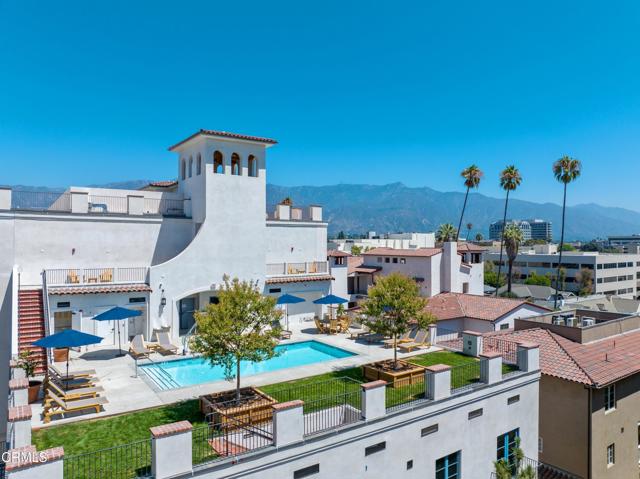 Discover Catalonia, where modern living meets timeless elegance, nestled in the heart of Pasadena's Playhouse Village. Designed for seekers of a refined and inspiring living experience. Catalonia offers lush courtyards, stunning views of parks and mountains, and architecturally significant residences in a culture-rich neighborhood. A state-of-the-art gym is centrally located on the main courtyard, equipped with Precor treadmills, an elliptical, a functional training system, free weights and a Peloton. The pool sits atop the fourth floor at Catalonia, with views of Pasadena's iconic City Hall to the West, the mountains to the North. Enjoy lounging by the pool or on the grass under the rooftop trees. The interiors of Catalonia are tastefully appointed with solid wood doors, quartz countertops, tiled bathrooms and luxury vinyl plank floors. Each unit flows outdoors to a balcony, terrace or side yard.