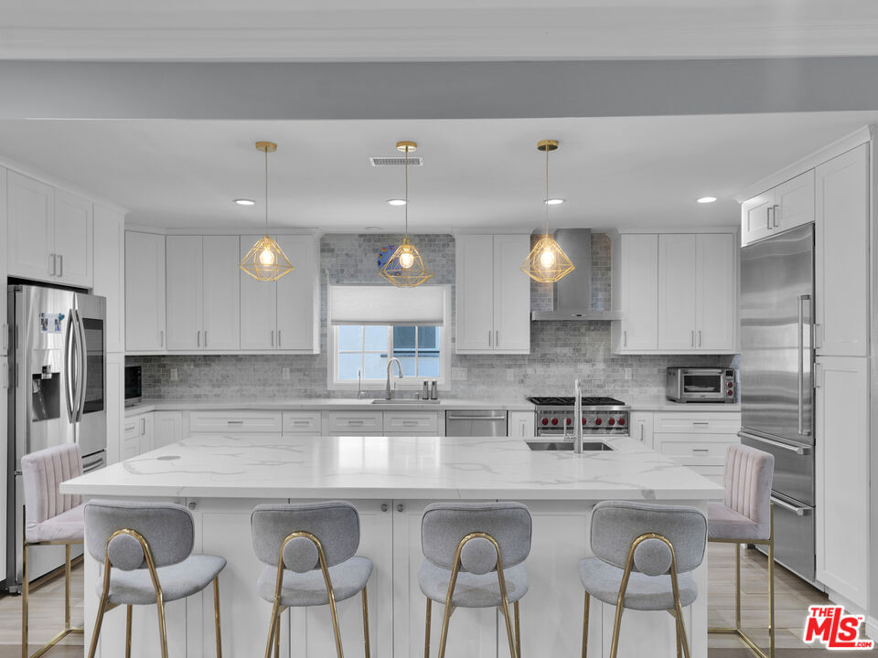 Located in one of the most sought-after neighborhoods within the award-winning San Marino School District, this beautifully renovated 4-bedroom, 3.5-bathroom home offers the perfect blend of luxury, functionality, and timeless appeal. Step through the welcoming foyer into an open and airy interior that has been completely remodeled from top to bottom with exceptional attention to detail. Gorgeous hardwood floors flow seamlessly throughout the home, setting the stage for refined living. The heart of the home is the chef-inspired kitchen with a 52x110 island, outfitted with top-tier appliances and finishes: a Wolf 6 burner gas range, Wolf drawer microwave, Sub-Zero built-in freezer refrigerator, Samsung french door refrigerator, Bosch stainless steel dishwasher, wine fridge and an LG washer and dryer for everyday convenience. The centerpiece a Galley Ideal Workstation Sink is paired with stunning Quartz countertops, offering both beauty and functionality for culinary enthusiasts. The spacious layout includes four generously sized bedrooms and three tastefully appointed bathrooms, providing ample space for family, guests, or a home office setup. Outside, enjoy a huge backyard oasis, perfect for entertaining year-round with two covered entertaining areas, ideal for al fresco dining, lounging, or hosting gatherings under the stars. This move-in ready home combines modern luxury with the charm of a coveted location don't miss the opportunity!Interested in this Listing?