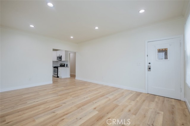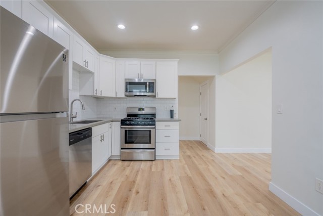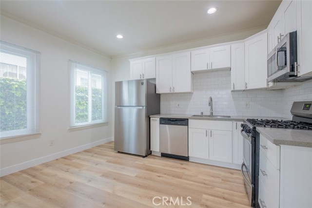 Nestled in Pasadena, this property is a spacious 2 bedroom, 1 bathroom unit available for lease. Inside, you will find fresh paint and new flooring accented by baseboard moldings, high ceilings with recessed lighting and crown moldings, as well as a washer and dryer in the unit. Enjoy prepping meals in the sleek kitchen featuring quartz countertops, soft shaker cabinets, a spice rack, stainless steel appliances, and a large stainless steel under mount sink. The bathroom is complete with a quartz countertop and new tile flooring. Both bedrooms offer ceiling fan light fixtures, ample closet space, and plenty of natural light. This lease also includes a 1 car detached garage and a second tandem parking spot, along with a small private outdoor space perfect for seating or relaxing. Charming yet cozy, the building includes just four total units and is located close to the freeway, PCC, Caltech, Old Town Pasadena, and more.