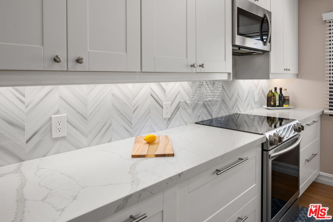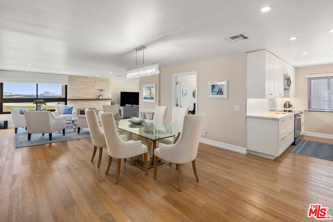 Discover the charm of coastal living with this unique opportunity to own a generous, top-floor, southwest-facing corner unit situated in the heart of Playa Del Rey. This stunning contemporary condo with only one common wall offers 1,772 square feet of living space, featuring two spacious bedrooms, and an ENCLOSED OFFICE. The versatile home office is perfect for remote work or creative endeavors. Step inside to discover a bright and airy home, filled with natural light. The renovated chef's kitchen is a culinary delight, equipped with stainless steel appliances, sleek white cabinetry, engineered quartz countertops, and a marble backsplash that enhances the home's fresh coastal aesthetic. The kitchen seamlessly flows into the living area, where a custom travertine gas fireplace adds warmth and charm. Enjoy the comfort of carpet, white oak engineered hardwood, and tile floors, complemented by elegant chandelier and recessed lighting throughout. Relax on your private balcony or take advantage of the communal pool and barbecue area for outdoor gatherings. Additional conveniences include central AC and heating, a washer and dryer. Your parking is a breeze with assigned spaces in the garage with guest options and common storage provide ample space for your belongings. Nightly overnight security guard 7 nights a week. This condo seamlessly blends contemporary amenities with elegant style, creating an ideal home environment. Seize the chance to enjoy the finest living experience in Playa del Rey! Staging has been removed.Interested in this Listing?