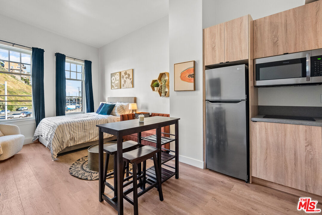 Presenting a stunning, fully furnished work-live apartment at The Lofts in Playa Del Rey, where modern comfort meets beachfront living. Available for both short- and long-term leases, this exquisite property offers an unmatched coastal lifestyle. Just steps from the beach, this unit provides a unique chance to experience the serene beauty of Playa Del Rey.Upon entering, you'll be welcomed by a stylish, open-concept interior filled with natural light. The living area is tastefully furnished with contemporary decor, blending comfort and elegance. Every detail is thoughtfully curated, offering a luxurious retreat.This apartment includes a beautifully furnished bedroom, a modern bathroom, and a well-equipped kitchen. The bedroom offers a peaceful escape, while the spa-like bathroom features sleek fixtures and finishes for a relaxing experience. A major highlight of this property is its proximity to the beach. Imagine starting your day with a refreshing stroll along the shore or unwinding with a sunset just outside your door. Playa Del Rey's lively beach community offers a range of activities, including water sports, biking, and dining at beachfront restaurants. The apartment complex also provides convenient amenities such as in-unit laundry, bi-weekly cleaning, and utilities (water and electricity included), ensuring a hassle-free living experience. With its prime location, exquisite furnishings, and close access to the breathtaking Playa Del Rey beach, this work-live apartment offers an extraordinary opportunity for those seeking a coastal getaway. Don't miss out-contact us today to schedule a private viewing and experience the charm of Playa Del Rey living.Interested in this Listing?