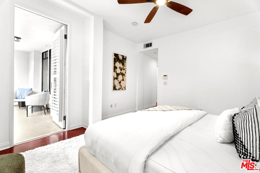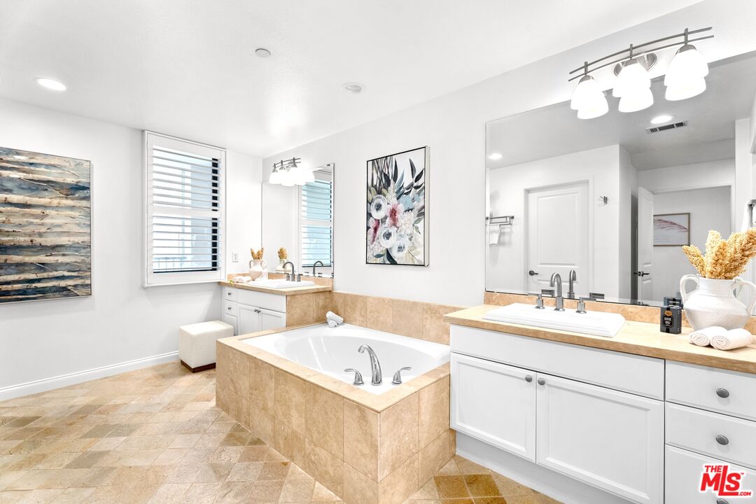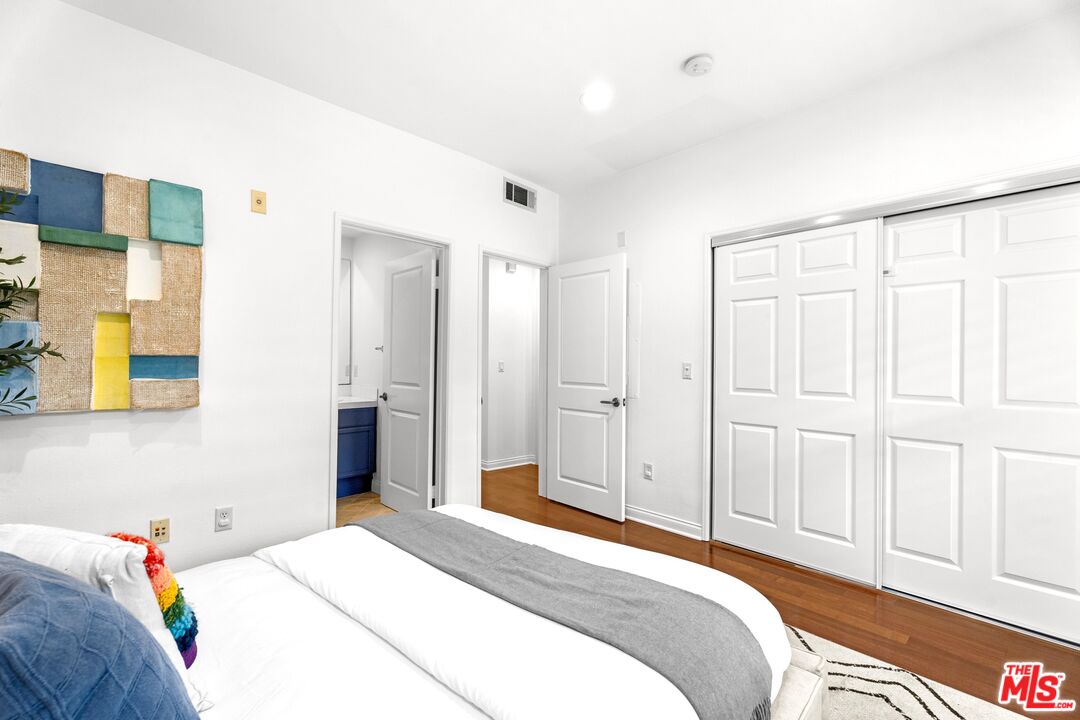 Don't miss this spectacular corner-unit home at the renowned Metro building in Playa Vista, featuring two bedrooms plus a versatile flex room that can serve as an office, den, or easily be converted into a third bedroom. Spanning 1,675 square feet across two levels, this light-filled residence showcases rich hardwood floors throughout (no carpet) and two expansive balconies, each overlooking the tranquil, tree-lined Crescent Park. Thoughtfully designed for both comfort and flexibility, the open layout adapts effortlessly to your lifestyle needs. The first level sets the stage for effortless entertaining, whether you're hosting a cocktail soiree or a relaxed BBQ on the oversized, covered patio. The recently renovated kitchen features sleek quartz countertops, glossy Thomasville Nouveau acrylic cabinetry, and matching stainless steel appliances, offering both beauty and functionality. Upstairs, you'll find both bedrooms, each with its own en-suite bathroom and serene treetop views. The primary suite is a true retreat, complete with a walk-in closet, double vanities, a soaking tub, and a separate glass-enclosed shower. A side-by-side laundry area outside the bedrooms adds extra convenience. Thoughtfully upgraded with striking Hunter Douglas plantation shutters throughout, this home also boasts a coveted ground-floor location ideal for dog owners and those who value easy in-and-out access without relying on an elevator. The unit includes two non-tandem parking spaces, each with EV charging access. As a Playa Vista resident, you'll enjoy top-tier HOA amenities including access to The Resort and CenterPointe Club with pools, state-of-the-art fitness centers, high-speed internet, cable TV, home security monitoring, and 24/7 neighborhood bike patrol. You are a ten-minute walk to the Farmer's Market and Runway's retail and dining scene: Whole Foods, Free Market, Superfine Playa, SenderOne, Sol Cocina, Hopdoddy, Tocaya, Loqui, Cinemark, Blue Bottle, and more. Plus, you're near major tech offices including Google, YouTube, Meta, Nike, The Honest Company, and Tencent.Interested in this Listing?