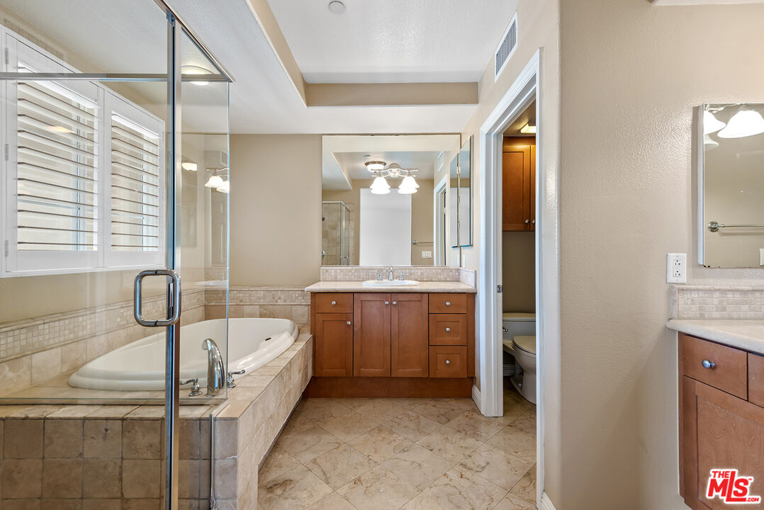Discover luxury living in the heart of Playa Vista with this stunning top-floor penthouse condo in the highly coveted Paraiso community. Boasting 2 bedrooms, a spacious loft, and 3 bathrooms, this impressive unit offers 1,886 square feet of living space. Enter on the main level, where a sophisticated living room welcomes you with abundant natural light, soaring two-story high ceilings, a fireplace, built-ins, and a spacious balcony offering lovely exterior views. The living room flows seamlessly into the dining area and the chef's kitchen, which is equipped with stainless steel appliances, ample cabinetry and counter space, and a breakfast bar with plenty of room for seating. The top-floor loft serves as a versatile flex space, overlooking the living room to create an airy, open atmosphere. When it's time to unwind, retreat to the lower level, where you'll find two generously sized bedrooms and two bathrooms. The oversized primary suite features a walk-in closet, a private balcony, and a spa-like en-suite bathroom with dual vanities, a soaking tub, and a glass shower. Additional highlights include a spacious guest bedroom, a remodeled guest bathroom, abundant windows that bathe the space in natural light, side-by-side laundry, built-ins, and two designated parking spots. Experience the epitome of urban living in vibrant Playa Vista, with easy access to local amenities such as The CenterPointe Club, The Resort, Runway shopping, and more.Interested in this Listing?