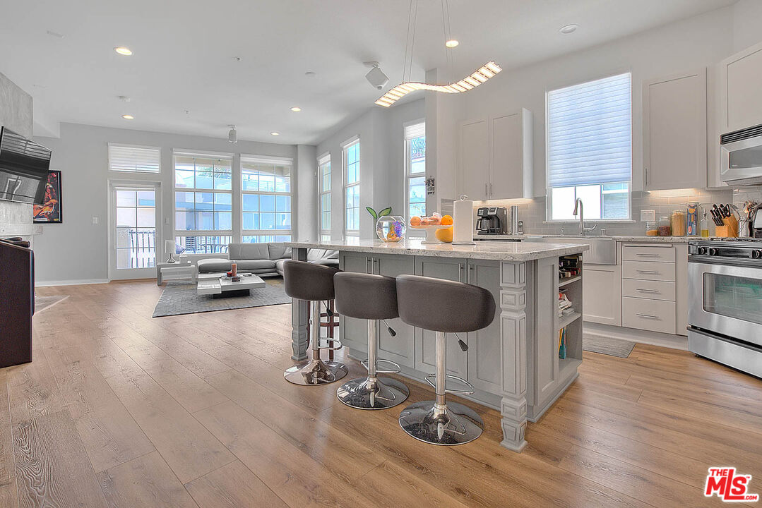 Welcome to one of the most sought-after units at The Lofts at Playa Vista! This stunning, light-filled end unit boasts the largest floor plan in the building with soaring 10-foot ceilings, exposed ductwork, and contemporary industrial character throughout. Fully remodeled and meticulously maintained by the original owner, this 3-bedroom, 2-bathroom loft features: A spacious open-concept layout with new luxury vinyl plank flooring and designer finishes. A gourmet center island kitchen with granite countertops, stainless steel appliances, farmhouse sink, and double faucet. A stylish living room with concrete accent fireplace and reclaimed wood mantle. A luxurious primary suite with walk-in custom closet and spa-like bath featuring a steam shower, rain head, and dual vanities. Custom motorized window treatments, fresh paint, and double-pane windows for energy efficiency. A private balcony with string lighting perfect for BBQs and relaxing evenings. Enjoy resort-style amenities: access to pools, spas, fitness centers, sport courts, dog parks, playgrounds, and summer shuttles to the beach. Ideally located directly across from Concert Park, with events, eateries, The Gulp Brewery, Coffee Bean, and more just steps away. Includes 2 side-by-side parking spaces in a secure garage, guest parking, and all the conveniences of Playa Vista living.Interested in this Listing?