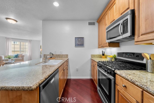 Welcome to Breakwater Village a beautifully maintained, resort-style 55+ community in the heart of the South Bay. This private and spacious 1-bedroom, 1-bath corner unit offers an ideal layout with an open floor plan and rich cherry wood floors throughout. The bright kitchen features stainless steel appliances, granite countertops, and custom cabinetry, seamlessly flowing into the dining and living areas. Enjoy indoor-outdoor living with access to a private balcony from both the living room and the generously sized bedroom, which also includes a walk-in closet. The bathroom is stylishly appointed with a travertine tile tub/shower combo and marble-topped vanity. Additional highlights include brand new carpet in the bedroom, fresh interior paint, a brand new in-unit washer and dryer, central A/C, and an easily accessible location near the Ruxton Lane gate. Community amenities include a pool, fitness center, theater room, clubhouse, BBQ area, outdoor fireplace, dog run, and secure gated access. Located just minutes from the beach, shopping centers, and dining, with easy freeway access this is South Bay senior living at its best.Interested in this Listing?