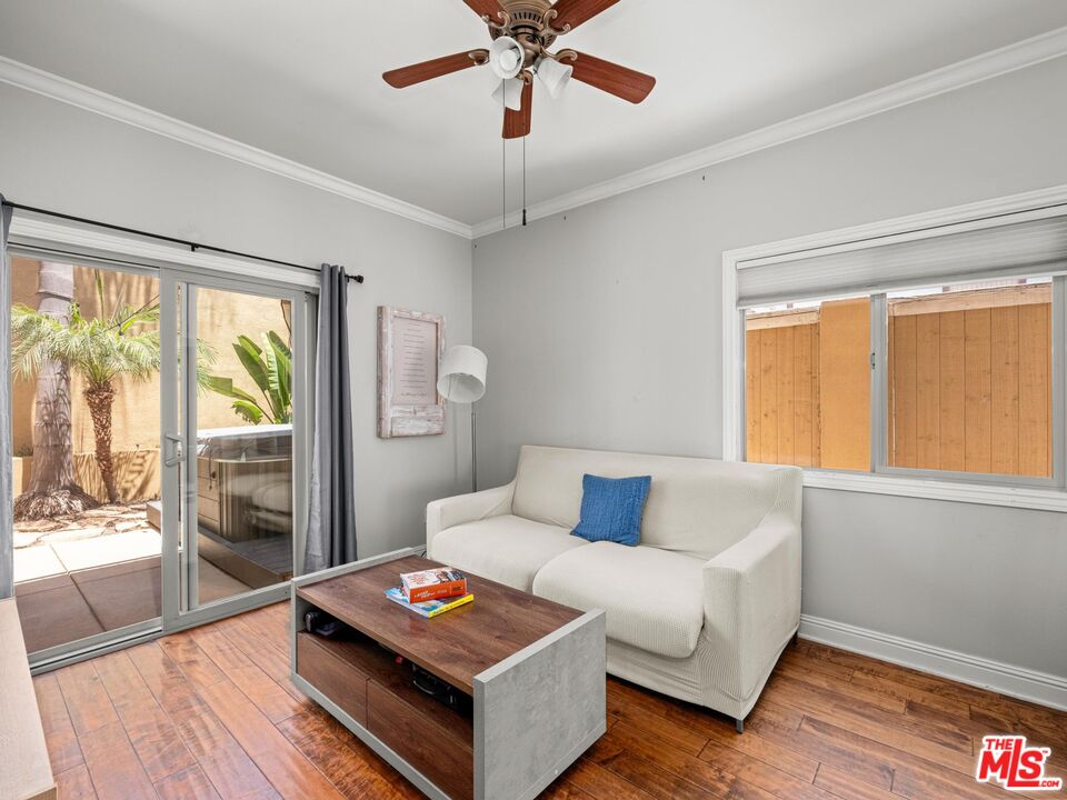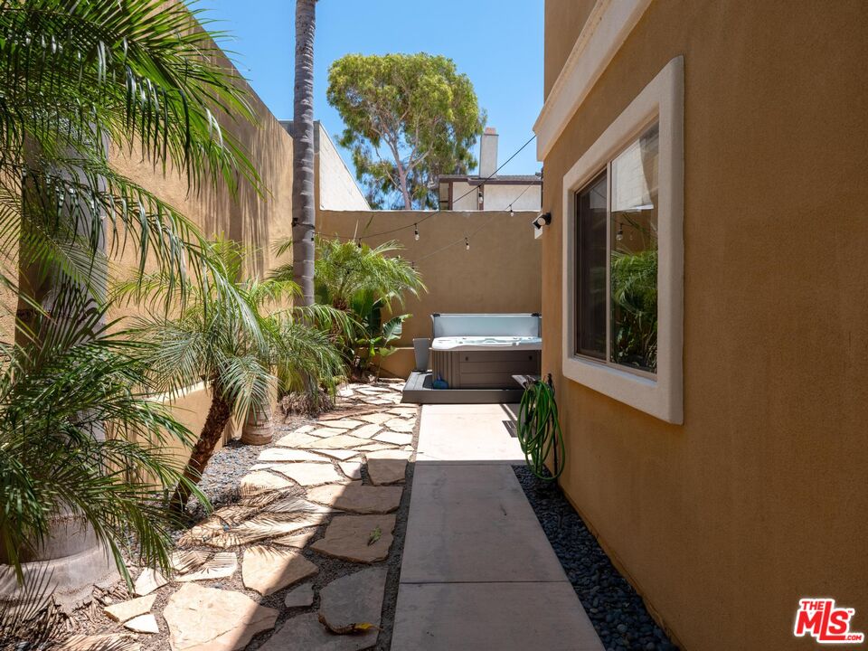 Rear Free standing Unit with rear privacy wall, private yard and ocean/marina view roof deck. Reverse floor plan with 2nd floor gourmet kitchen featuring Viking stainless appliances and granite countertops. Vaulted ceiling great room features a stacked stone fireplace and french doors opening to a rear balcony overlooking the exceptionally private rear yard. Oversized primary suite features a walk-in closet, built-ins with plenty of storage and a gas fireplace. Rear yard features a sparkling above ground spa. Maple plank hardwood floors throughout are in very good condition, as are all fixtures and railings. Roof deck is an entertainers paradise with room to grill, dine and take in the ocean views and breeze. Very friendly neighbors with no HOA.Interested in this Listing?