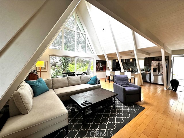 Experience the charm of this uniquely designed A-frame home that will make you fall in love with modern, remodeled living. The home sits high above the street, surrounded by many trees that provide both privacy and a great view. The natural surroundings, including mature trees and a park just across from the house, enhance the privacy, landscaping, and sunset views. The windows, glass features, high ceilings, and open floor plan create a magical feeling when living in this house. The private, gated entrance adds to the unique and special character of the property. A new solar energy system has just been installed, the stainless steel kitchen counters are another highlight of the modern remodeling. Don't miss the opportunity to experience Southern California luxury living, just minutes from the beach.Interested in this Listing?