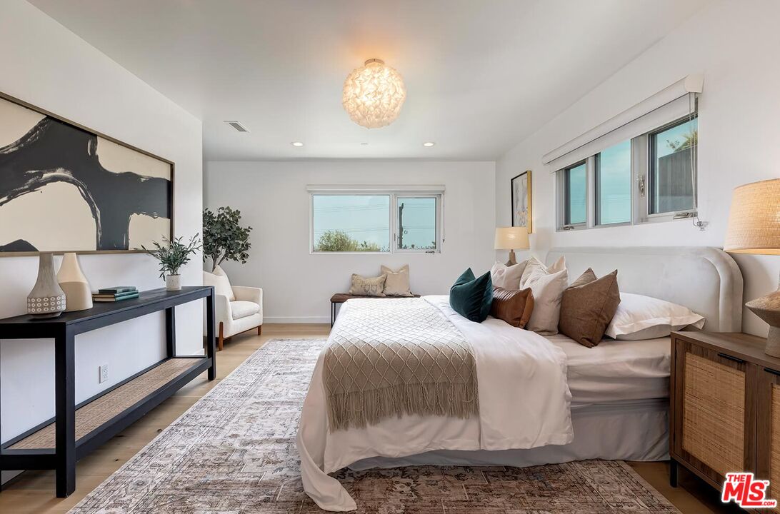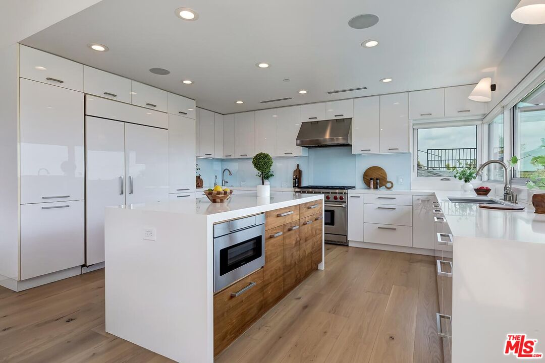 Nestled in the scenic College Streets of Santa Monica, this gated architectural gem offers privacy and luxury with stunning ocean, mountain, and city views. Reimagined by Space International Architects, the home features three levels of natural light-filled spaces. Enjoy the open-concept layout and explosive views with a chef's kitchen, dining area, formal living room, and balcony with retractable shade. The primary bedroom offers tranquil ocean views with a full ensuite bathroom and walk-in closet, while the middle level includes three guest bedrooms, two full bathrooms, a family room, office, and a second balcony overlooking the sparkling pool. The lower level boasts a versatile studio, wine cellar, and a beautiful expansive backyard designed by Environmental Landscape Development, with a solar-heated pool, spa, fire pit, and built-in BBQ. Minutes to trendy shops and restaurants on Montana Ave, the Brentwood Country Mart and in the Franklin Elementary School district, this modern, elegant home is a rare find in a desirable neighborhood.Interested in this Listing?