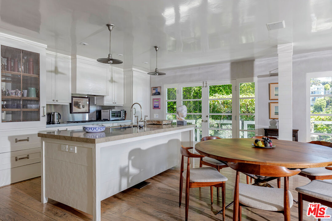 Extremely charming, extensively remodeled Seaside Traditional perched on a dramatic promontory site with spectacular, unobstructed ocean and canyon views from every room in desirable Santa Monica Canyon. Situated in close proximity to the beach and beloved neighborhood restaurants, this sun-filled gem is the former home of acclaimed and widely published designer Jeffrey Alan Marks who remodeled the home with great taste, quality and captivating aesthetic with equal parts formal English home and California beach cottage. Since then, the current owner has thoughtfully enhanced the interiors with additional aesthetic updates, further refining the home's charm and individuality while maintaining the essence of Marks' original vision. Vaulted wide planked ceilings, tongue and groove paneling, two fireplaces, extensive built-ins, French doors throughout and wonderful surprises at every turn. Welcoming, private courtyard entry leads to open living & dining areas and fabulous cook's kitchen which are all flooded in natural light and open to the outdoors. There are two bedrooms, including a second floor primary suite with awe-inspiring views of the Santa Monica bay and the entire canyon, fireplace, sitting room/sunroom with built-in day-bed, hotel-like bath and large fitted walk-in closet. Attached guest cottage with separate entrance and private garden. Large street-to-street lot features lovely private gardens with various sitting areas and room for pool and/or ADU. Other features include a paneled butler's pantry/bar and a direct-access private garage. Truly a one-of-a-kind jewel-box home offering the most extraordinary setting and very best California lifestyle!Interested in this Listing?