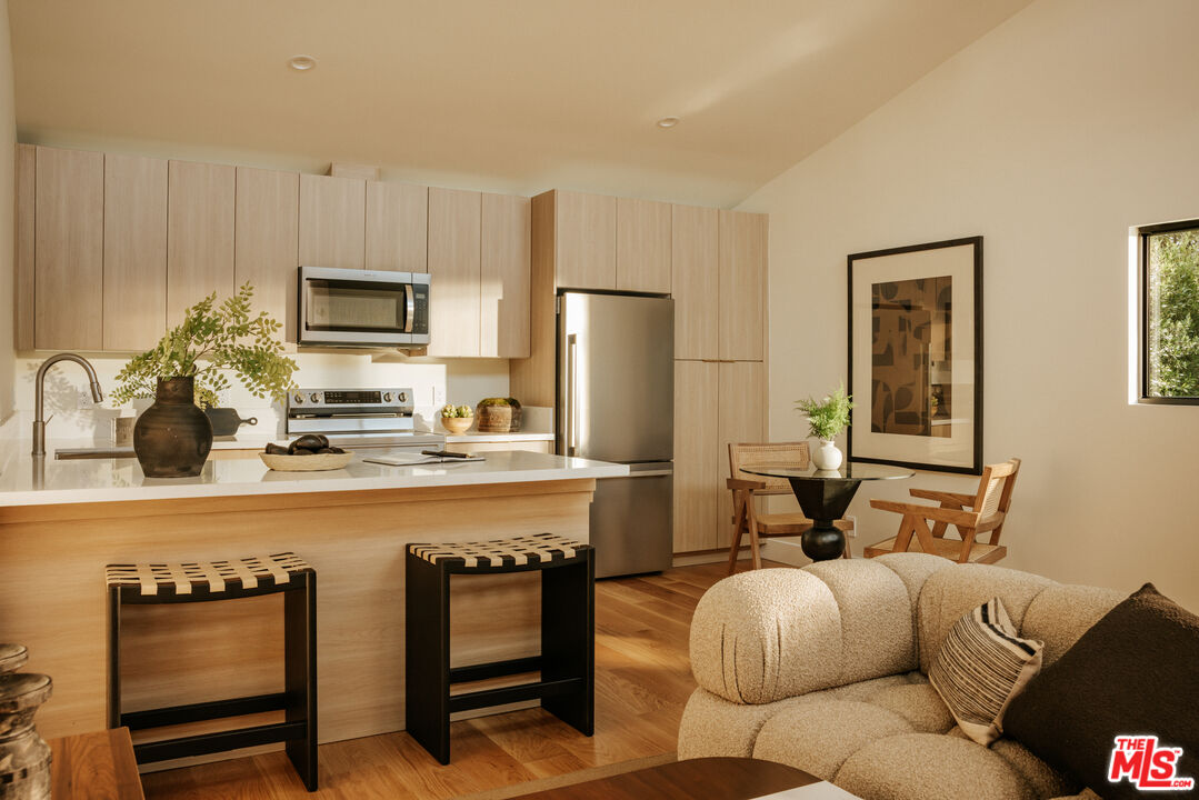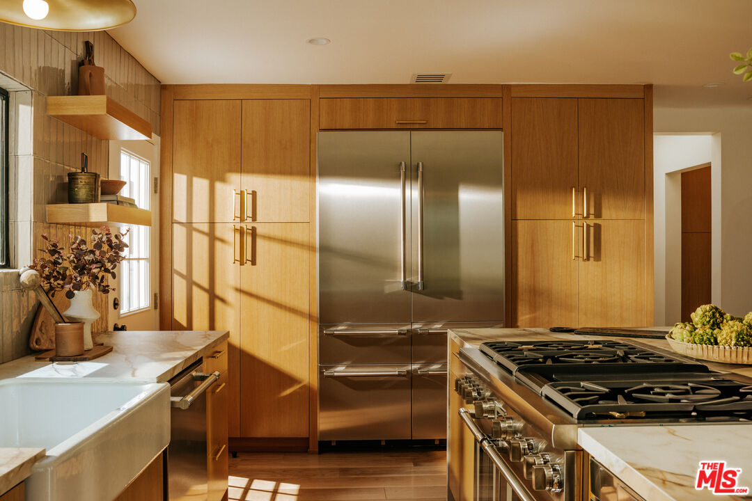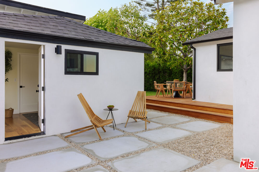 Welcome to this beautifully reimagined oasis nestled in the highly desirable Sunset Park neighborhood of Santa Monica. This stunning property offers a 3-bedroom, 2-bathroom main house, alongside a charming 1-bedroom, 1-bathroom guest house. Whether you're looking for additional space for guests, a home office, or a creative studio, this layout offers privacy and unparalleled flexibility. The location is the perfect blend of tranquility and convenience, with grocery stores, an array of renowned restaurants, and lush parks just a short stroll away. This home truly represents the best of Santa Monica living, designed by LA Times 40 Under 40 designer Dani Boyd, blending modern comfort with vibrant community life. The main house greets you with an open-plan living room, highlighted by a sleek, modern wood burning fireplace that provides a cozy focal point for the space. The chef's kitchen features a stunning, oversized Calcutta island that serves as the centerpiece of the space. Equipped with top-of-the-line Thermador appliances, the kitchen combines form and function, making it a dream for anyone who loves to cook or entertain.The living area offers an abundance of natural light and features dreamy window seats, perfect for relaxing with a book or enjoying the front garden views. The primary bedroom is a serene retreat, offering easy access to the backyard for seamless indoor-outdoor living. It is beautifully appointed with custom luxury built-ins, providing ample storage space while maintaining a clean and elegant aesthetic. Just off the primary bedroom is a versatile bonus space, ideal for a home office or creative studio. This space is enhanced with custom cabinetry for additional storage, providing a perfect blend of functionality and style.The backyard is a peaceful oasis, perfect for both relaxation and entertaining. A large deck provides ample room for lounging and dining, while the lush, grassy yard offers plenty of space for outdoor activities, making it an ideal setting for gatherings or quiet afternoons. The backyard serves as an extension of the home's livable space.The guest house offers a peaceful, private retreat, complete with a full kitchen, bedroom, bathroom and flexible space that can be used for a variety of purposes, whether it's a lounge space, studio for creative work, exercise room, or home office. The kitchenette adds to the functionality of the space, making it a fully independent unit for visitors or multi-generational living.This home is the epitome of style, comfort, and convenience, seamlessly blending modern luxury with a welcoming atmosphere. Located in one of Santa Monica's most sought-after neighborhoods, it offers an exceptional opportunity to live in a prime location. Don't miss the chance to make this gorgeous home yours.