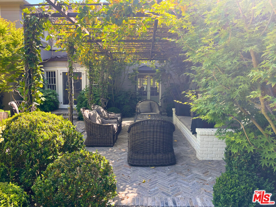 This classic 1930s home is reminiscent of a Paul Williams design perfectly located in Santa Monica Flats north of Montana. Surrounded by exquisitely landscaped gardens designed by Scott Shrader, the property offers a serene retreat with mature plantings, sculptures, curated greenery, and a magical Koi pond with lilies leads you to the front door. A welcoming foyer leads to a gracious formal living room with built-ins and a fireplace, a cozy dining room ideal for gatherings, and a sunlit kitchen all three spaces featuring French doors that open to the formal outdoor living areas, creating effortless indoor-outdoor flow. A butler's pantry and a quiet library-style office with an adjacent powder room complete the main level. Upstairs, the primary suite includes a fireplace and en-suite bath, along with two additional bedrooms and a flexible bonus room. At the rear of the property, a detached guest cottage offers a bedroom, bathroom, laundry with a light airy gym/media room all oriented toward the lush backyard. The outdoor area is anchored by a pool, spa, a cool fire pit with abundance of seating, and enclosed and privatized by a peaceful garden lined with paths of vibrant foliage. Ideally located between Montana Avenue and the Brentwood Country Mart, this elegant home offers classic architecture, privacy, and a deep connection to nature all in one of the Westside's most desirable neighborhoods.Interested in this Listing?