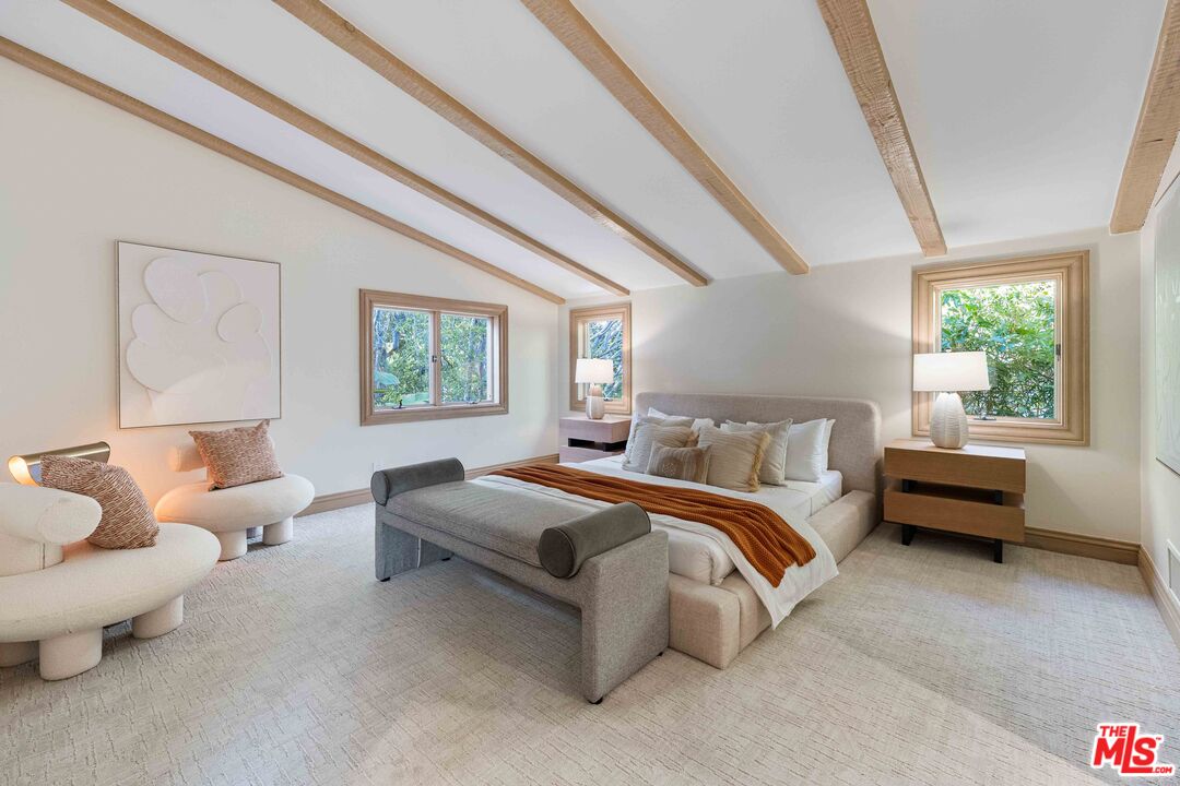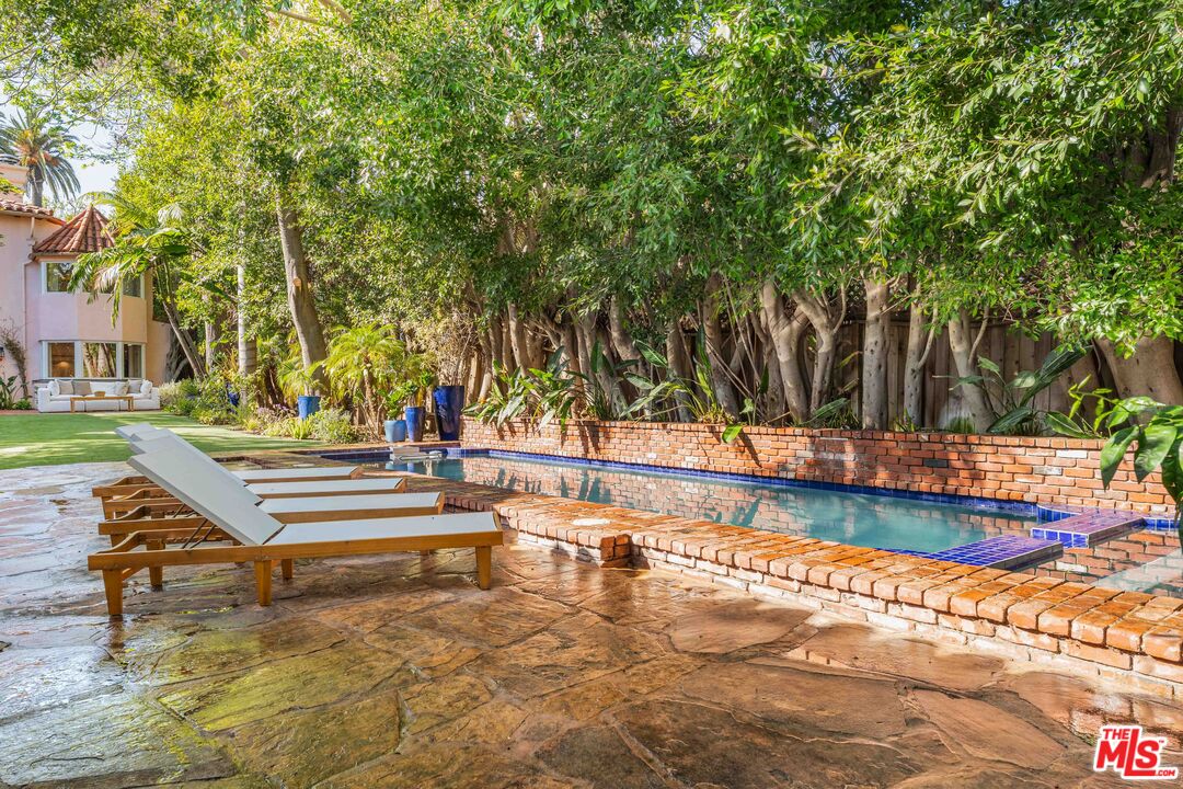 Situated in a coveted Santa Monica enclave, on one of the most desired streets in the city, this timeless Mediterranean estate offers elegant coastal living just moments from the ocean. Step into a sumptuous living room with soaring two-story ceilings, a dramatic fireplace, and abundant natural light. The formal dining room exudes classic sophistication ideal for refined entertaining. The expansive primary suite is a true retreat, featuring a cozy sitting area and its own fireplace. Two additional en-suite bedrooms offer privacy and comfort, while a separate guest house is its own private suite perfect for visitors or extended stays. A warm and inviting library /media room with custom built-ins and a fireplace adds to the home's charm. There is also a dedicated office room for work or study. The kitchen is complete with a sunlit breakfast area, center island, and a well-appointed butler's pantry. Additional highlights include a bonus room, oak hardwood floors, and a total of three fireplaces. Outside, a tranquil patio which overlooks a lush garden, sparkling pool and spa with cascading waterfalls is your idyllic setting for both relaxation and entertaining. The interiors have been thoughtfully refreshed with designer-selected paint, refinished hardwood floors, and luxurious new carpeting, while the grounds have been completely reimagined with all-new, professional landscaping. Indulge in this rare blend of refined living and an unbeatable location, where the scent of salt air greets you with every dawn. Just moments from the beach, mornings here are marked by gentle ocean breezes, the distant sound of waves, and refreshing coastal light that fills the home bringing a sense of serenity that only near seaside living can offer.Interested in this Listing?