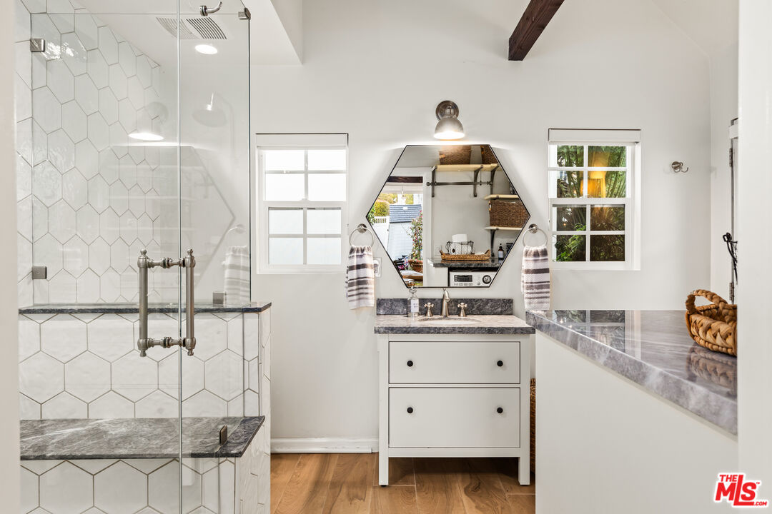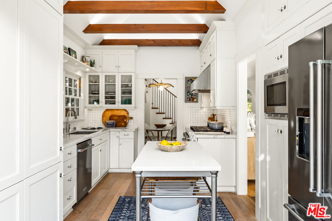 Timeless, English country elegance blends seamlessly with modern convenience in this stunning home in prime Santa Monica, North of Montana. Situated on a sprawling 7,400+ sqft lot, and nestled among mature landscaping and flourishing fruit trees, this 3-bedroom, 2.5-bathroom retreat (with a bonus potential 4th bedroom and another full bath) offers warmth, character, and an effortless Southern California lifestyle. Step inside to discover a thoughtfully updated interior, where classic details like the original arched doorway and windows meet stylish, refined finishes. The spacious kitchen is a true centerpiece, boasting high-end appliances, custom cabinetry, and a dining nook perfect for morning tea. Two spacious bedrooms, full bath, and ensuite half-bath complete the first floor. A few steps lead to the second-floor primary suite, a private sanctuary with the sophistication of a chic French hotel. Featuring a walk-in wardrobe, a stylish bathroom, and a custom coffee bar, this space is designed for to be your own personal retreat. The inviting living spaces flow beautifully, providing the ideal setting for both intimate gatherings and grand entertaining. Outside, dreamy outdoor spaces invite you to unwind in nature's embrace. Imagine sipping coffee on the antique brick patio, dining al-fresco among the foliage and tendrils of climbing flowers, strolling through your own private orchard of lemon, orange and lime trees, or taking a dip in the cedar spa. Whether you're entertaining guests or simply enjoying the serenity, this home's gardens and patios create a truly magical ambiance. Adding even more versatility is the detached original carriage house, a charming flex space with full bath brimming with possibilities. Use it as a bedroom, private studio, guest retreat, home office, or anything your heart desires! Another detached bonus space offers the ideal setting for a playroom, workout room, or creative haven. Located in a storybook setting yet just minutes from modern conveniences, shopping and dining on Montana Avenue, plus exceptional Santa Monica Schools, the Palisades, and the beach, this one-of-a-kind home is ready to welcome you. Come experience its warmth, beauty, and boundless potential.Interested in this Listing?
