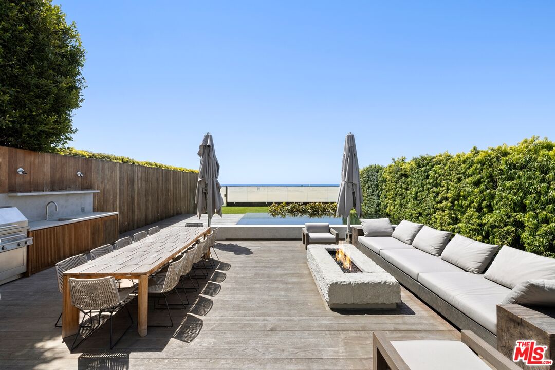 An architectural masterpiece, this one-of-a-kind beachfront estate is a statement in refined minimalism and modern design excellence. Custom designed by the acclaimed XTEN Architecture, 547 Palisades Beach Road spans four levels and was built with uncompromising attention to detail along one of Santa Monica's most sought-after stretches of coastline. The main level offers seamless indoor-outdoor living, with floor-to-ceiling glass doors opening to a sweeping backyard overlooking the ocean. A sleek black-tile lap pool and spa are surrounded by teak decking, built-in seating, multiple lounge and dining areas, a clean-lined lawn, and a fully equipped outdoor kitchen- all set against breathtaking panoramic coastal views.Inside, the architecture speaks for itself. Crisp lines, soaring volumes, and a curated mix of refined and natural finishes establish a setting that is both visually bold and remarkably serene. The open living and dining areas are anchored by a minimalist chef's kitchen- outfitted with integrated appliances, smooth cabinetry, and a large island that blends function and form with ease. The second floor features four generous en-suite guest bedrooms while the entire top level is dedicated to the primary suite- a private, light-filled retreat that opens to an expansive terrace spanning the full width of the home with sweeping ocean views. The suite also includes a spa-like bath and dual dressing rooms, combining luxury with intention. The lower level includes a theater, gym, bar, wine storage, laundry, and staff quarters with its own entrance. A detached guest house above the garage features a living area, bedroom, bathroom, and balcony. Additional highlights include a four-car subterranean garage with car lift, full outdoor bath and rinse shower, and integrated smart home security. 547 Palisades Beach Road is modern coastal architecture at its finest- striking in execution, serene in experience, and unmatched in its setting.Interested in this Listing?