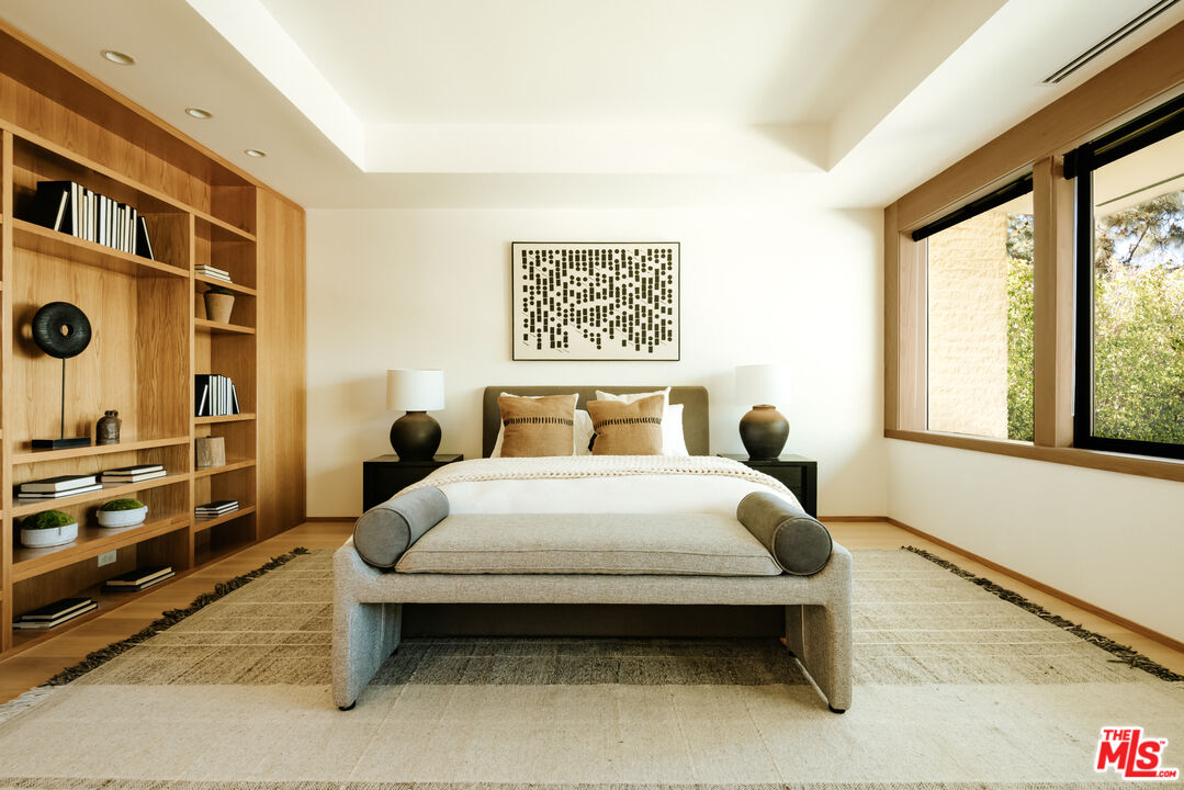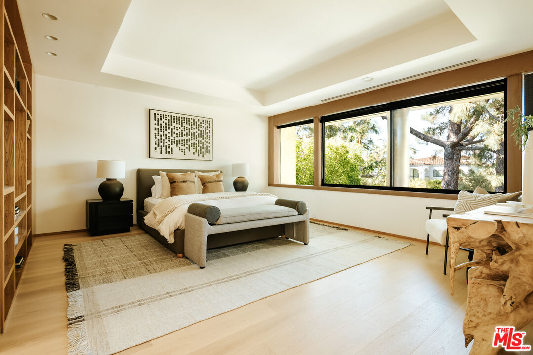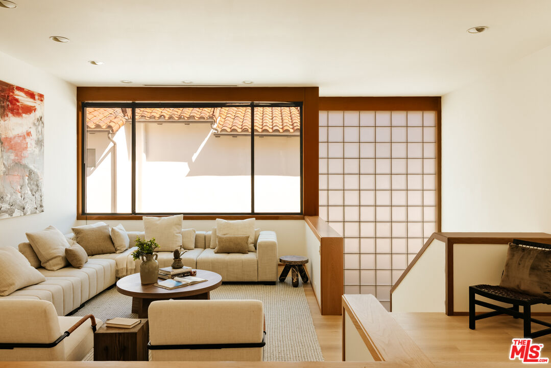 Set on a coveted 60 ft wide, 8,715 sqft lot in Santa Monica's prized Gillette Regent Square, just north of Montana Avenue, 622 24th Street is a rare Bauhaus gem offering 8,350 sqft of refined living. Designed by world-renowned architect Irving Tobocman--his only residential project in California--this striking contemporary home exemplifies proportion, materiality, and natural light at its finest. A harmonious blend of form and function, the residence features full-slab Italian travertine floors, custom-crafted oak millwork, and floor-to-ceiling glass, reflecting Tobocman's commitment to continuity, spatial harmony and timeless design. The main level opens through a gracious formal foyer into a voluminous living room and a defined dining space, framed by floor-to-ceiling glass windows which blend the indoors with the natural landscape. A sleek chef's kitchen with dual Sub-Zero refrigerators, Gaggenau ovens, and a Wolf range anchors the home, complete with an oversized island, breakfast nook, and walk-in pantry. The adjacent family room is ideal for entertaining, featuring a travertine bar, built-in Sonos system, and sliding walls of glass that open to a lush, newly renovated backyard with a saltwater pool, spa, and baja. A bedroom, two powder rooms, and an attached two-car garage complete the main floor. A dramatic double-height corridor with architectural glass block leads upstairs to four spacious bedrooms all with en-suite baths, oversized walk-in closets, and custom built-ins surrounding a cozy, sunken den. The primary suite is a true retreat with dual baths, a jacuzzi-jet soaking tub, massive walk-in closet, and a 35 ft private terrace overlooking the pool. Descending downstairs, the lower level boasts a sprawling recreation room perfect for entertaining guests, children to play and health and wellness programming. A new custom kitchenette, private office, laundry room, 371 sqft of storage, and a full guest suite with private living room, bedroom, and full bath. Located just minutes from the Brentwood Country Mart, Franklin Elementary, and the boutiques and cafes of Montana Avenue, 622 24th St is an irreplicable one-of-a-kind architectural statement, an art collector's dream, and a true sanctuary for modern family life.