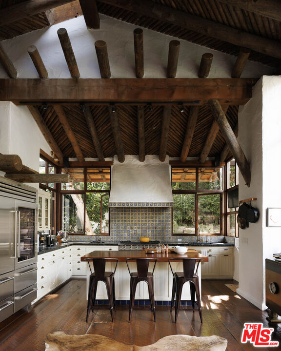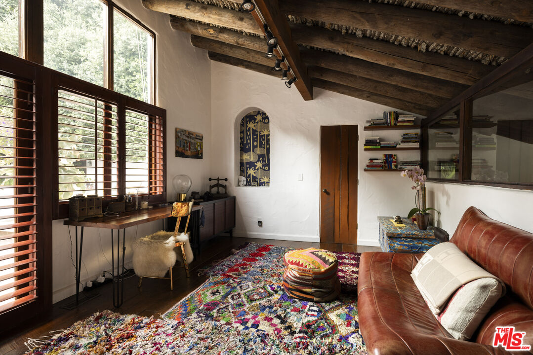 Tucked in Santa Monica Canyon, just up the street from the Pacific Ocean, this enchanting hacienda blends rustic charm with Spanish sophistication. Floor-to-ceiling windows and exposed wood beams create a light-filled retreat, seamlessly connected to nature. The main house features an expansive open-concept design with soaring ceilings, a versatile mezzanine (perfect for a library or office), and even a hidden meditation space for quiet moments. The primary suite includes a walk-in closet and ensuite bath that opens to your own private outdoor alcove, while two guest bedrooms share a Jack-and-Jill bath. A piece of Hollywood history, the original Leo Carrillo barn--once part of the late actor's former estate--has been transformed into a two-story guest house. The lower level offers a one-bedroom living space with an office, den, and full bath, while the upper level features a studio apartment with a kitchenette, full bath, and private deck--perfect for work, creativity, or hosting. Set on nearly an acre of lush, verdant grounds, this serene sanctuary includes a thriving vegetable garden and greenhouse, providing year-round farm-to-table living. A rare opportunity to experience effortless California living.Interested in this Listing?
