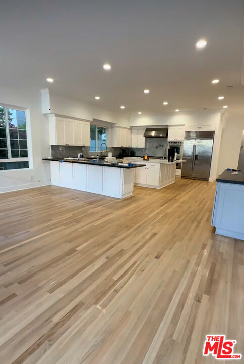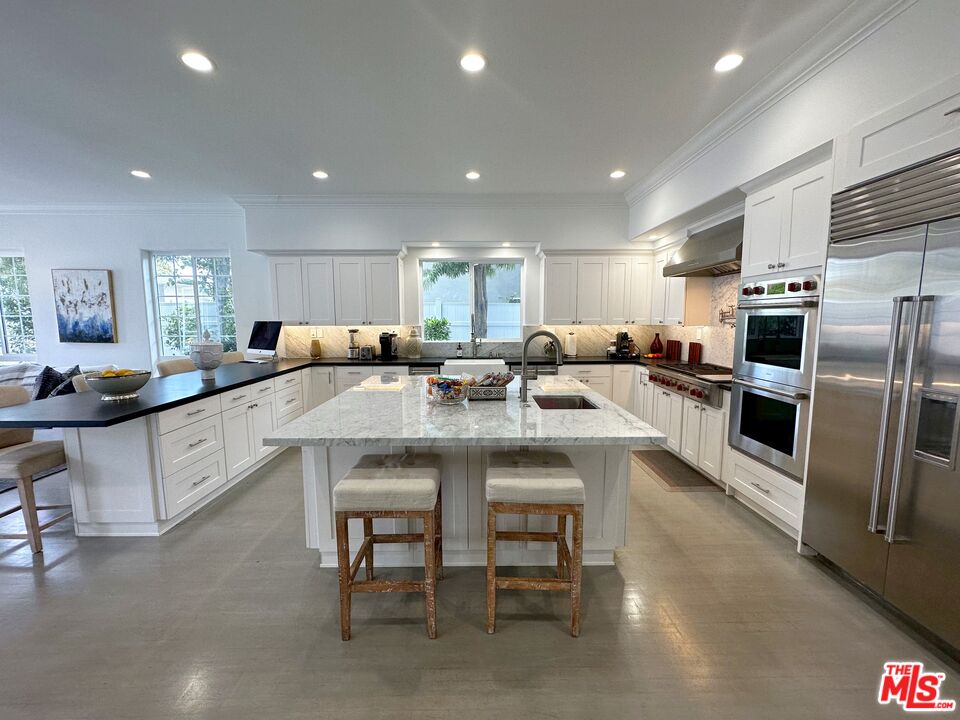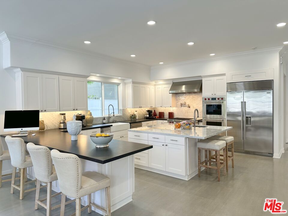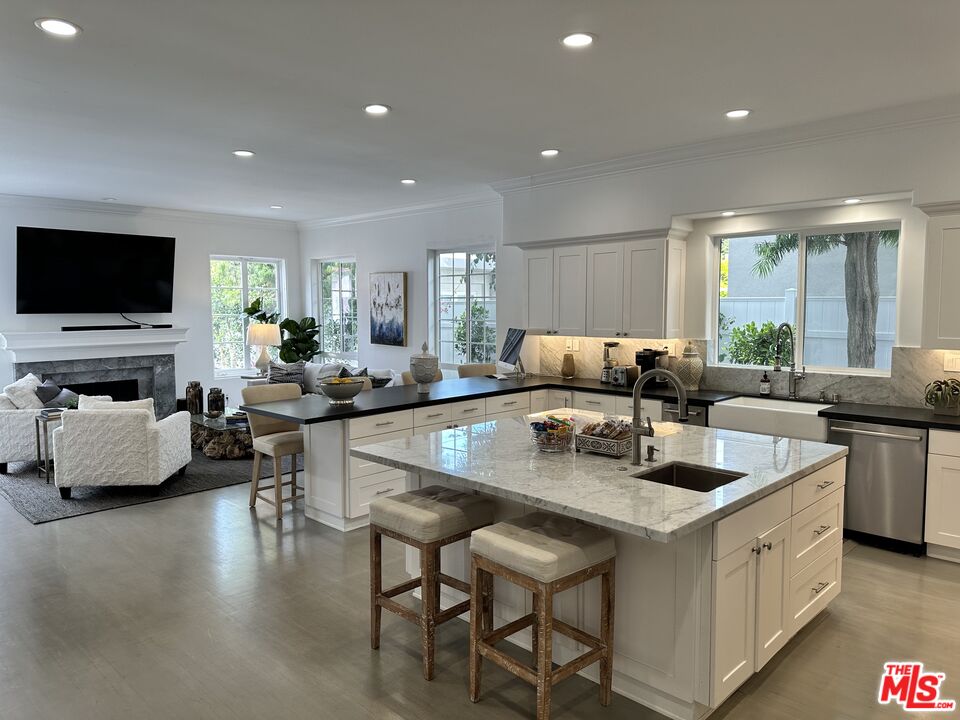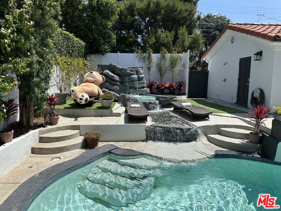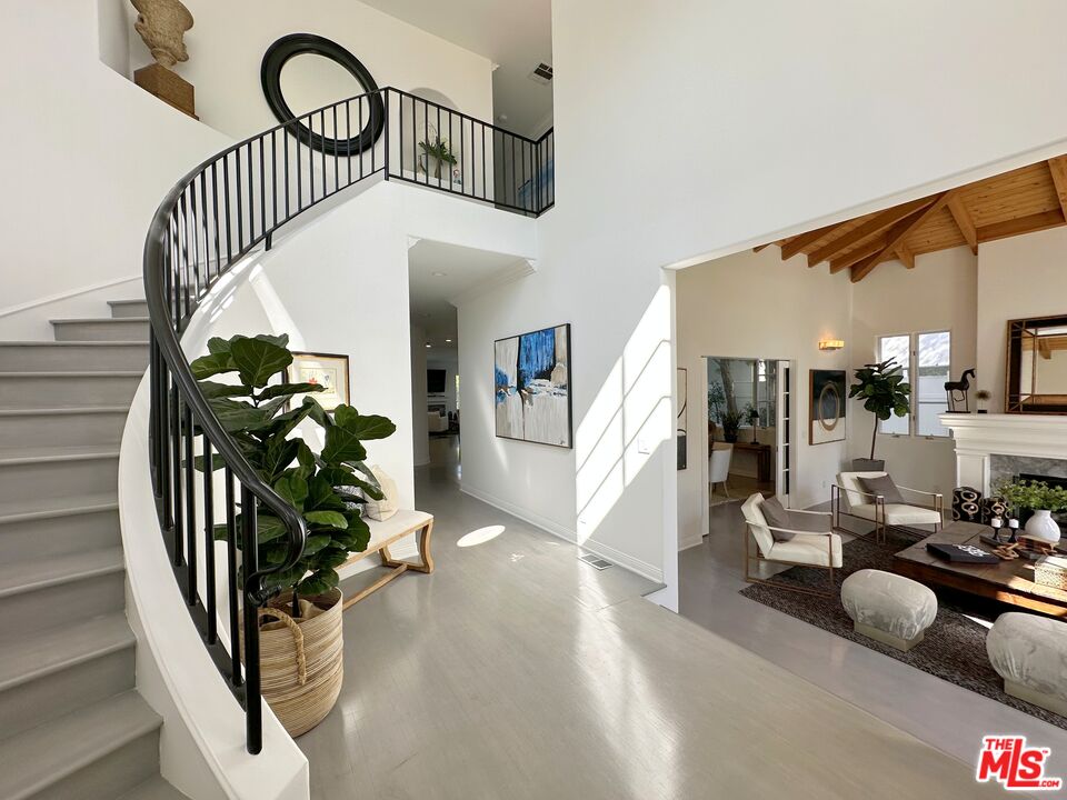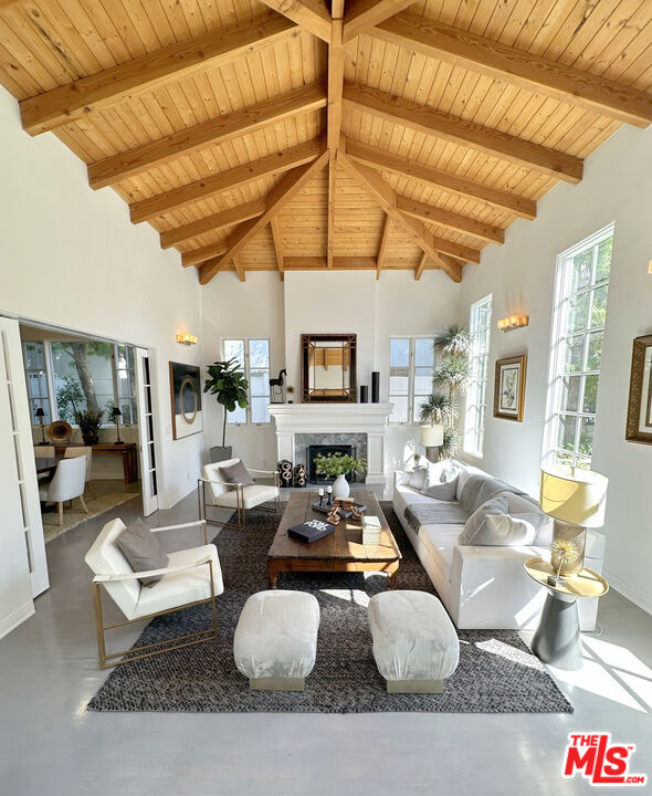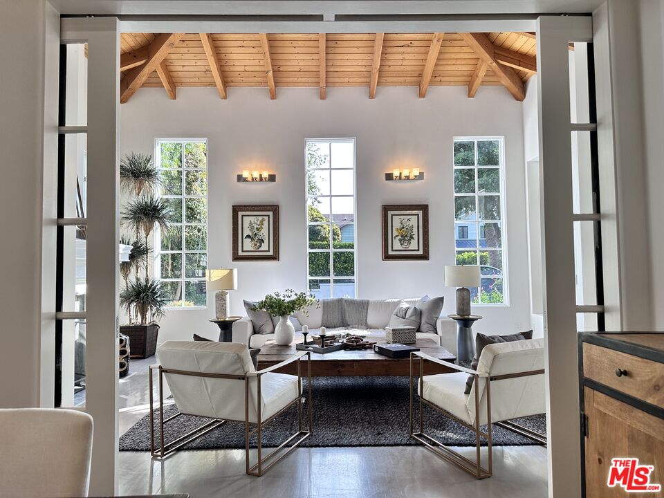 Nestled on the serene 10th Street, this estate stands as a testament to refined luxury, great ocean breezes and sheltered by mature privacy hedges that create an exclusive sanctuary. Upon entry, your attention is drawn to the dramatic entry way of over 20 feet high. Then entering the living room the 18-foot arched high wood-beamed ceilings and five towering windows flood the elegant living room with natural light, on to the newly refinished solid wood floors and anchored by a real fireplace. The heart of this residence showcases a newly reimagined large chef's kitchen, where a magnificent Black Tempal Cesarstone and Italian marble island offers gracious seating for eight, complemented by professional-grade Wolf and Sub-Zero appliances, including dual dishwashers that make entertaining effortless. Adjacent to the kitchen is a separate large home office or game room. The upper level presents four generously proportioned bedrooms, crowned by a sublime primary suite that serves as a private retreat. This exceptional space features a serene balcony overlooking the manicured grounds, a spa-inspired bathroom complete with a eucalyptus steam shower, custom walk-in closet, dedicated makeup vanity, and an intimate fireplace that creates the perfect ambiance for peaceful evenings. The ground floor continues the home's gracious flow with an additional en-suite bedroom, spacious office/game room, and a powder room adorned with striking backlit onyx. Step into the meticulously designed backyard to discover an entertainer's paradise, where a stunning swimming pool with spa and grand waterfall creates a resort-like atmosphere. A tranquil pebble rock river winds through the space, while a private dining pavilion offers the perfect setting for alfresco gatherings. The grounds have been thoughtfully oriented to capture ideal sun exposure, creating an outdoor oasis for year-round enjoyment. This exceptional residence holds a privileged position on an exclusive 40-foot-wide street, offering superior accessibility and parking compared to a typical 30-foot wide north of Montana Avenue street. Its location provides effortless access to Montana Avenue's premier boutiques and dining, while the beach lies just moments away. Presenting exceptional value below 1,235 per sq ft. when the area is typical $1,750 - 2,900 per square foot range, this estate represents a rare find in Santa Monica's most coveted enclave. Here, the seamless fusion of space, privacy, and sophisticated design creates an unmatched living experience. This home has much larger rooms and offers a unique quietness than many other homes. A separate living area of about 900 sq. ft. is present on the lower level of the home with a private outside entrance. Could also be configured as a sound studio, game room or home office. An additional ADU over the existing garage may increase the total property square footage.Interested in this Listing?