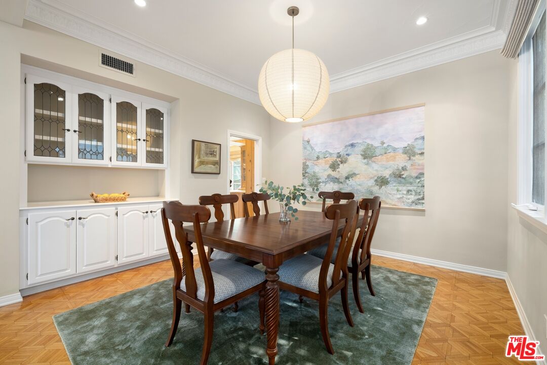 Tucked away on one of the most coveted streets north of Montana, this stately residence sits on one of the largest lots in the area, offering an unparalleled combination of space, privacy, and walkability. Grand in scale yet warm and inviting, the home boasts soaring ceilings, exquisite crown molding, and rich parquet floors throughout. Three fireplaces create a sense of timeless charm, while the formal living and dining areas provide the perfect backdrop for entertaining. At the heart of the home, a spacious country-style eat-in kitchen blends classic elegance with everyday functionality. A distinguished library with a wet bar offers a refined retreat, ideal for working from home or unwinding in style. Upstairs, the expansive bedrooms provide comfort and serenity, while large windows bathe the interiors in natural light. Outside, the sprawling, lushly landscaped yard is a rare find in this sought-after neighborhood; a true oasis with endless potential. Located on a peaceful, non-through street, yet just moments from the boutiques, cafes, and dining of Montana Avenue, this home offers the best of Santa Monica living.Interested in this Listing?