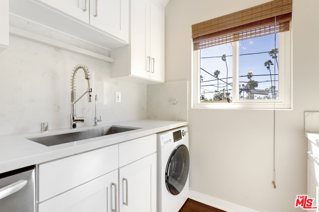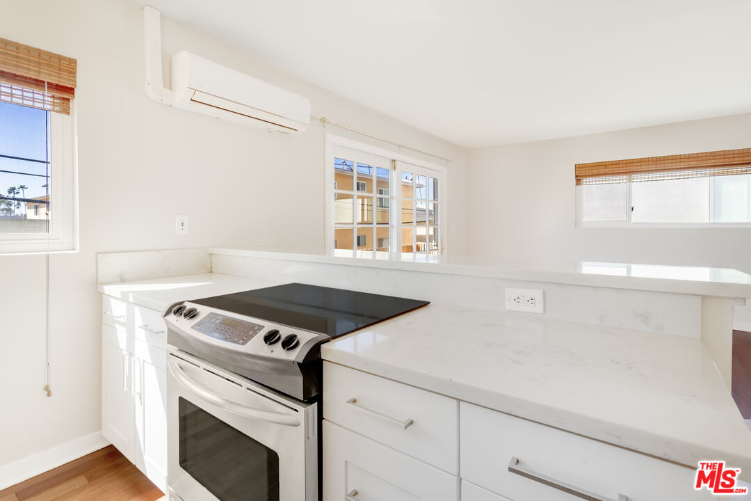 Experience Coastal Living in Prime Santa Monica! Imagine waking up to the soft glow of California sunshine streaming through your windows in this exquisitely upgraded top-floor, end-unit beach condo. Nestled in a well-maintained gated building, this residence offers a lifestyle of unparalleled comfort and sophistication, just moments from the iconic Santa Monica shoreline. Step inside and be captivated by the spacious, open floor plan, bathed in natural light and adorned with gleaming Mahogany hardwood floors. The heart of this home is the chef's dream kitchen, featuring custom-made cabinetry, sleek quartz countertops, and top-of-the-line stainless steel appliances perfect for culinary creations and effortless entertaining. Relax and unwind in the travertine bathroom, boasting granite countertop and designer finishes. The generously sized bedroom provides a tranquil retreat with abundant closet space, ensuring all your storage needs are met. Enjoy the convenience of in-unit laundry and air conditioning for year-round comfort. Step out onto your private balcony and soak in the serene palm tree views, a perfect spot for morning coffee or evening relaxation. This unit's unique West, South, and North exposures offer a wealth of natural light and only one shared wall, ensuring peace and privacy. This secure, gated community offers the added convenience of one-car parking in a subterranean garage with extra storage. Plus, the low HOA of $300/month covers hot water, sewer, and trash, simplifying your lifestyle. Located in the highly desirable Roosevelt Elementary School District, this prime North of Wilshire and West of Lincoln address is a mere 7 blocks from the beach, a short stroll to the chic boutiques and fine eateries of Montana Avenue, and moments from the vibrant Third Street Promenade and famous Santa Monica Pier. With easy access to the Expo Line and freeways, you're connected to all that Los Angeles has to offer. Experience the epitome of Santa Monica beach living. Don't miss the opportunity to make this coastal dream your reality. Explore the immersive 3D virtual tour and call for appointment today!