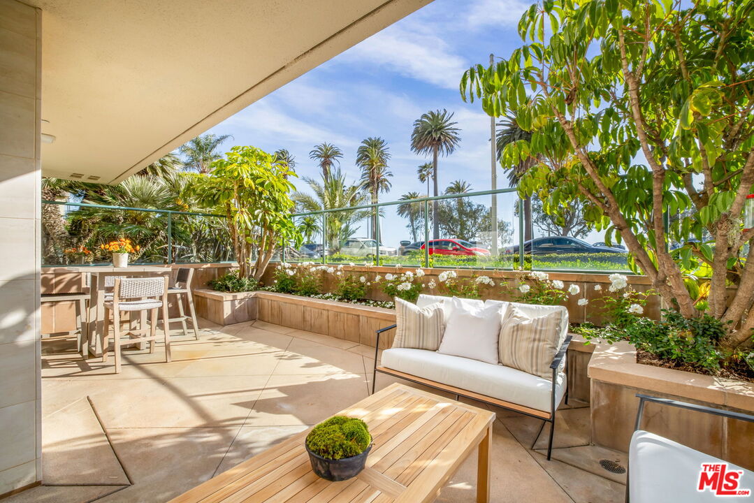 Truly one of the best buildings in the very best location of Santa Monica! This beautiful single level, end unit with almost 3,300 square feet of abundant living spaces invites an exhale. Great outdoor space offering a large private back yard patio with garden area, extremely rare in a condominium! Quintessential open floor plan where dining and living room flow together, with the living room offering an additional intimate sitting area and fireplace, aside from the "great room" feeling and hardwood floors. The front facing patio overlooks the green grass and trees of the park and enjoys the vibrant ocean-front community from the lush, front-facing patio. Wide formal entry leads to this elegant home all on one level. Formal dining area and wonderful kitchen with breakfast area and built-ins. Grand and spacious primary bedroom suite with sitting area and fireplace, also leads to front garden patio, an extremely spacious primary bath with separate tub and shower, dual vanities and water rooms, all complimented by two walk in closets. Large secondary en-suite bedroom with sliding doors leading out to the rear gardens. Den/office with built-ins and hardwood floors can be converted to a third bedroom, and also opens to the large rear private patio and garden. Access to outdoor spaces from almost every room with endless ocean breezes and fresh air year round. Easy elevator access to fantastic roof deck with gorgeous ocean views, park and tree top views, city lights views with pool, spa and sun deck. Exclusive luxury building amenities also include a state-of-the-art gym, banquet room with full kitchen, 24 hour concierge/doorman staff, extra storage, bike storage and side by side secure parking and 8 guest parking spaces. This ideal location provides daily access to shops, restaurants, parks, beaches, and all of Los Angeles within moments. Enjoy Southern California living at it's absolute best! Welcome Home!Interested in this Listing?