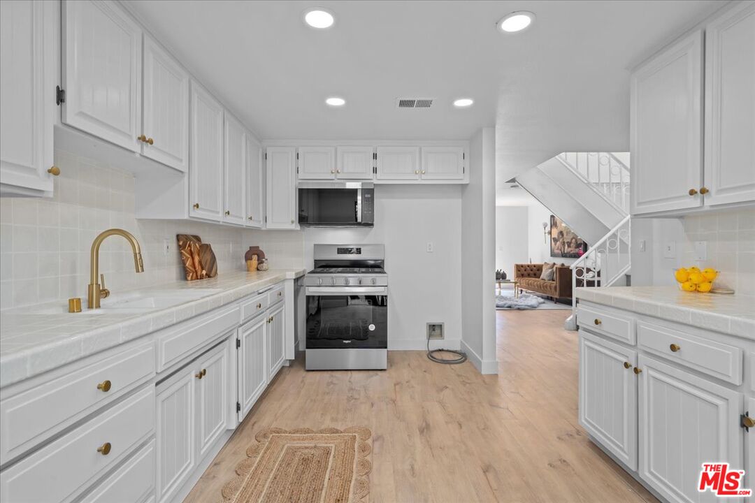 Rare, 2-bedroom, 2.5-bath Townhome, with side by side parking & your own private storage room. And upstairs you'll find two spacious en-suite bedrooms. The primary suite features a walk-in, cedar-lined closet with a skylight and a roomy bathroom with dual vanities, a soaking tub, and a separate shower. The second bedroom offers peek-a-boo mountain views and includes its own private bath with built-in cabinetry perfect for guests, family, a roommate, or working from home. The main level offers an open-concept living and dining area that opens to a private patio through a sliding glass door, making it easy to enjoy indoor-outdoor living. The kitchen is located separately, offering a bit of privacy for cooking, and includes a walk-in pantry in the hallway. Natural light pours in through the kitchen's own sliding glass door, and the space is complete with a brand-new stainless steel range/oven, microwave, and dishwasher. A powder room is conveniently located near the entryway, and in-unit laundry adds everyday ease. The home also includes side-by-side gated parking and a large private storage room. Part of a small building with just six townhomes, this is a perfect opportunity to enjoy low-maintenance living in a truly connected and convenient Santa Monica location. Enjoy the perks of urban Santa Monica living while being just moments from the serenity of the beach.Interested in this Listing?