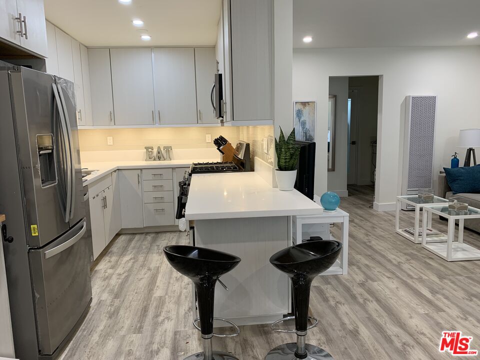 Wake up in the heart of Ocean Park, just a block from Main Street's vibrant cafes, restaurants, and shops. This top-floor, Corner area 1-bedroom, 1-bath condo offers the ultimate beachside lifestyle near Santa Monica Beach, the boardwalk, and the scenic coastal bike path. Designed by HGTV Canada, this thoughtfully renovated home features a galley-style kitchen with quartz countertops, touchless custom cabinets with hardwood interiors, under-cabinet lighting, and stainless steel appliances, including a gas stove with convection oven and a deep double-basin sink with a retractable chef's faucet. Smart home upgrades include "SMART" outlets, dimmable recessed lighting, and frosted glass doors/windows for an open, airy feel. The spacious bedroom boasts ample closet space with motion-sensor lighting and a remote-controlled ceiling fan, while the luxurious bathroom offers dual sinks, brushed chrome fixtures, a soaking tub, and a rain shower. Additional perks include two storage and one assigned parking spot. Enjoy community amenities such as a heated year-round pool, jacuzzi, BBQ area, rec room with WiFi, gym, surfboard storage, dry sauna, and ping pong/pool table. Nestled in the back corner of the building, this stylish retreat offers the perfect balance of coastal charm and modern convenience.Interested in this Listing?