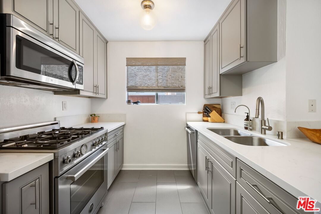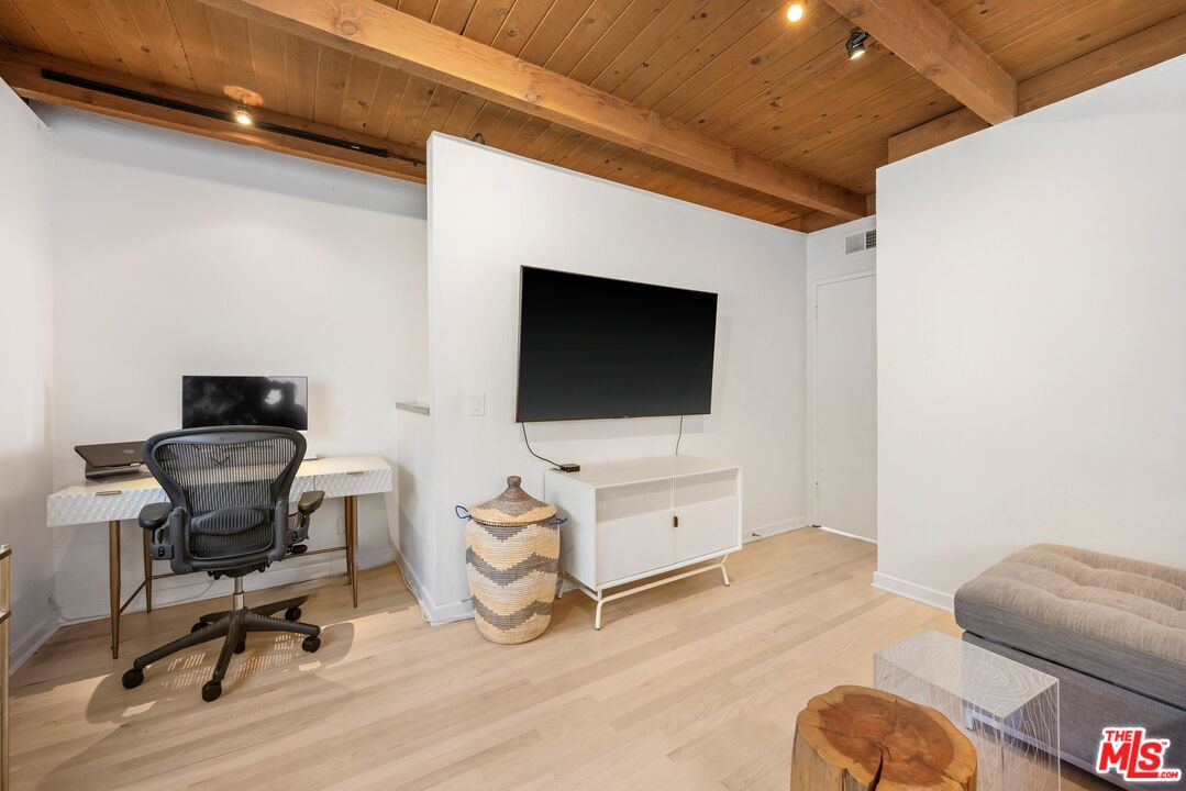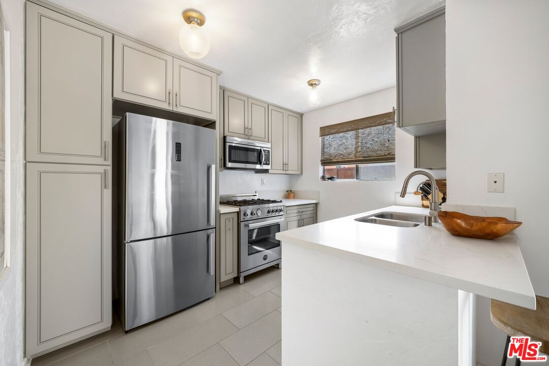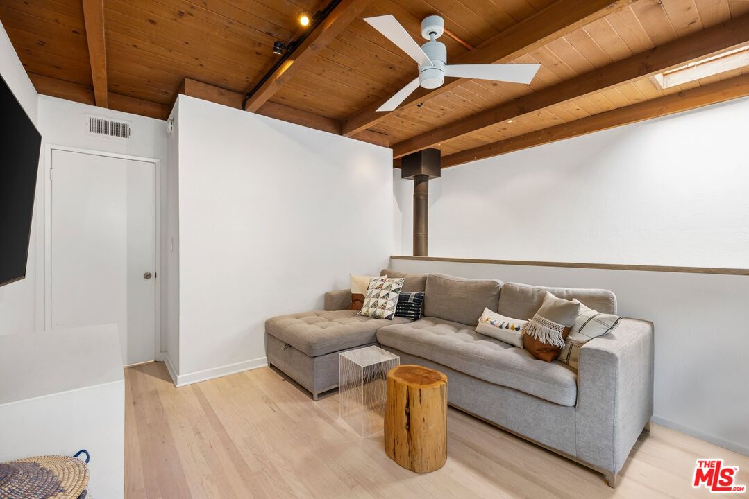 Don't miss this rare opportunity to own a stylish two-level townhouse-style condo in one of Santa Monica's most sought-after neighborhoods. The bright and inviting entryway features soaring open-beam ceilings and a skylight that floods the space with natural light.Enjoy a recently remodeled kitchen equipped with stainless steel appliances, quartz countertops, a pantry with roll-out shelves, and durable porcelain tile flooring. The spacious living room is anchored by a sleek mid-century modern fireplace, adding warmth and character to the home.Step outside to two private enclosed patios the larger one is outfitted with overhead lighting and ample seating, perfect for al fresco dining or entertaining guests.Additional highlights include custom oak flooring, recessed and studio track lighting, ceiling fans, an in-unit washer/dryer, NEST thermostat, and low HOA dues that include earthquake insurance. The secure building offers one assigned garage parking space and a bonus storage container.Tucked away on a quiet street, yet just minutes from the Expo Line, downtown Santa Monica, cafs, and restaurants.Interested in this Listing?