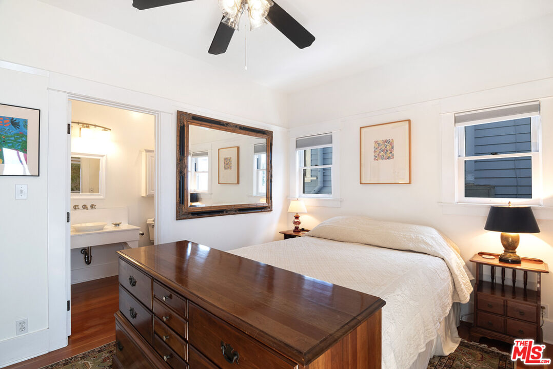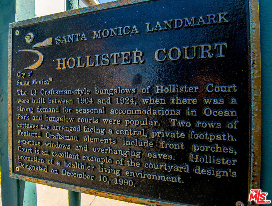 Price improvement! Now is the time to make this enchanting cottage that combines the best of historical charm and modern convenience your own. Whether you're drawn to its proximity to the beach, the vibrant local scene, or the serene community setting, this property promises a lifestyle rich in comfort and character. Don't miss the chance to own a rare gem in a highly sought-after location. Step into this well appointed one-bedroom cottage & den with tall ceilings that exudes historic charm. This 1 bedroom with the additional den offers the potential to easily convert into a second bedroom, providing flexibility to suit your needs. Charming eat in kitchen. Large remodeled bathroom that could easily service the 2nd bedroom if you decide to convert the den. Inside laundry. Additional attic storage space. The home features hardwood floors throughout. Inviting large front porch is perfect for enjoying the ocean breezes, offering a tranquil space to unwind and relax. There are ocean views from the community courtyard, enhancing the serene atmosphere. Just a short 5-block stroll to the beach, making it easy to enjoy sun, sand, and sea. Exclusive gated community on a street to street lot, Hollister Court features 13 unique free-standing bungalows, each with its own charm. This property is under the Mills Act, a testament to its historical value and significance. This designation ensures that property taxes remain exceptionally low. It has a very desirable location, just 3 blocks from the lively Main Street, where you can explore an array of shops, delightful restaurants, and cozy coffee shops. Adjacent to Hotchkiss Park with its sloping lawn and tall pine trees. Enjoy easy access to bike paths, tennis courts, and the iconic Santa Monica Pier, providing endless opportunities for leisure and recreation. Transportation is convenient with it's proximity to public transportation including the Metro Line, making commuting and exploring the surrounding areas effortless. The gated community of Hollister Court offers a sense of charm, security and exclusivity, with beautifully maintained bungalows, tropical landscaping and a friendly atmosphere. These historic properties are seldom available, making this a unique opportunity to own a piece of history.Interested in this Listing?