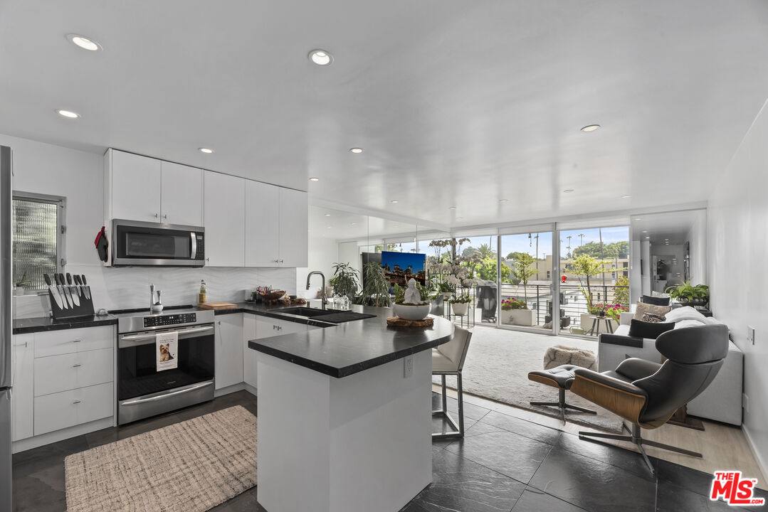 Situated in the coveted neighborhood of Ocean Park, you'll find this top floor, west facing, designer condominium. Located in a small, mid-century 10 unit complex, it is gated and offers a secure feeling throughout. This home features pale oak manufactured hardwood floors and great natural light. With an open plan kitchen and barstool seating, it presents you with the perfect opportunity for entertainment. Directly off the living area, you have a private, spacious and sunny balcony, offering the best place to enjoy your morning coffee or watching the sunset skies. Two welcoming bedrooms both include luxurious designer finished en-suite bathrooms. Located only four blocks away from Main Street, surrounding you with the best cafes, restaurants, bars and boutiques. With a short walk's distance, enjoy your long summer days at Santa Monica and Venice beach. This home presents you with the best Santa Monica lifestyle you won't want to miss out on.Interested in this Listing?
