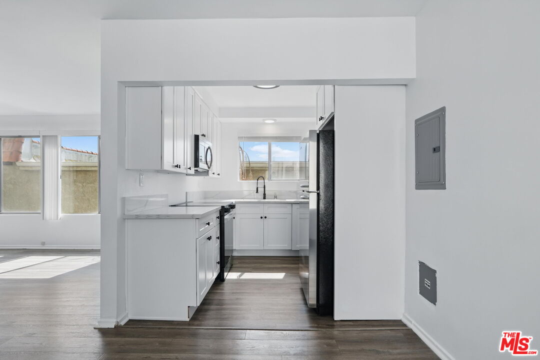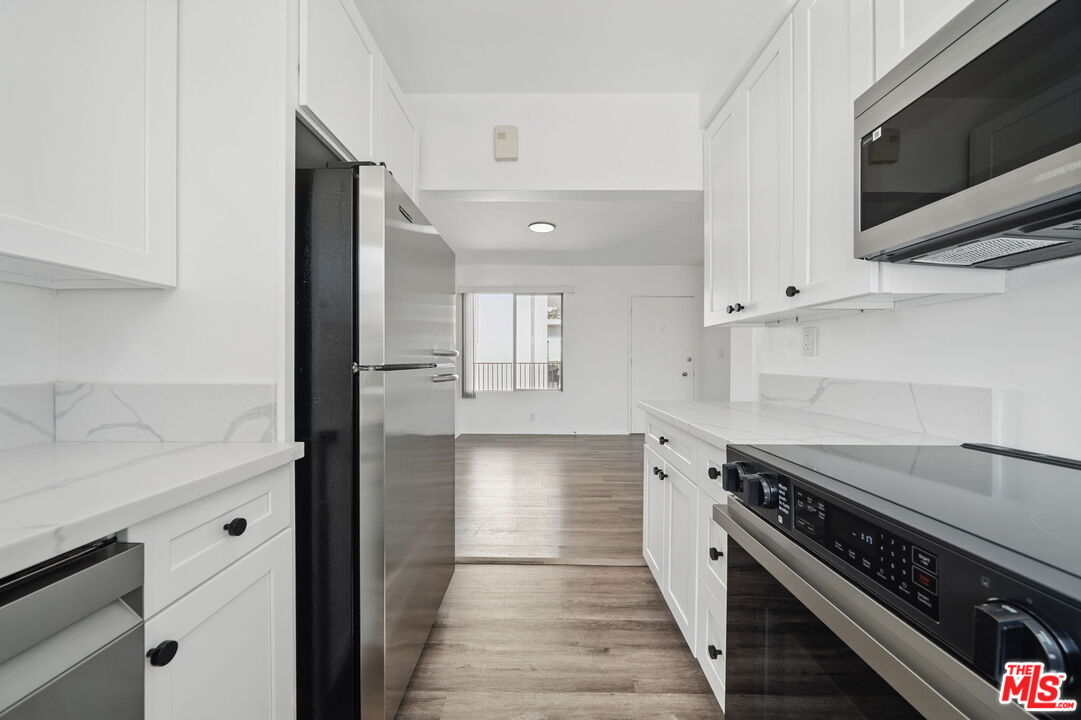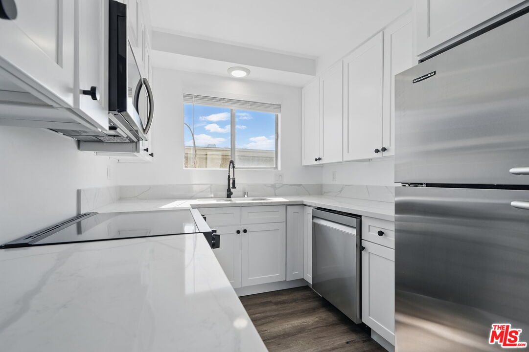 TOP FLOOR remodeled 2bed 2bath single story apartment north of Montana Ave, flooded with tons of natural light, less than five minutes walk from the beach on one of the most coveted streets in Santa Monica. Completely remodeled kitchen with quartz countertops, stainless steel appliances and new cabinets. Open floor plan with lots of windows and large private balcony. New laminate wood flooring throughout. Primary bedroom has lots of light and ensuite remodeled bathroom. 2nd bedroom is close to the primary and 2nd hallway bathroom has been remodeled too. In-unit Washer/Dryer and one parking spot in a gated secure garage. A classic California Mid Century open air interior style building with swimming pool and elevator. This prime location is walking distance to the Pacific Ocean, Montana Avenue with its' elegant shops and restaurants, the 3rd Street Promenade, and some of the best public schools in Santa Monica. PET FRIENDLYInterested in this Listing?