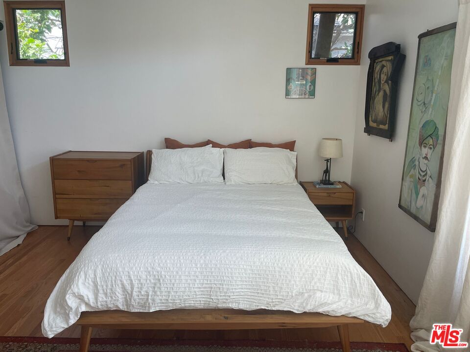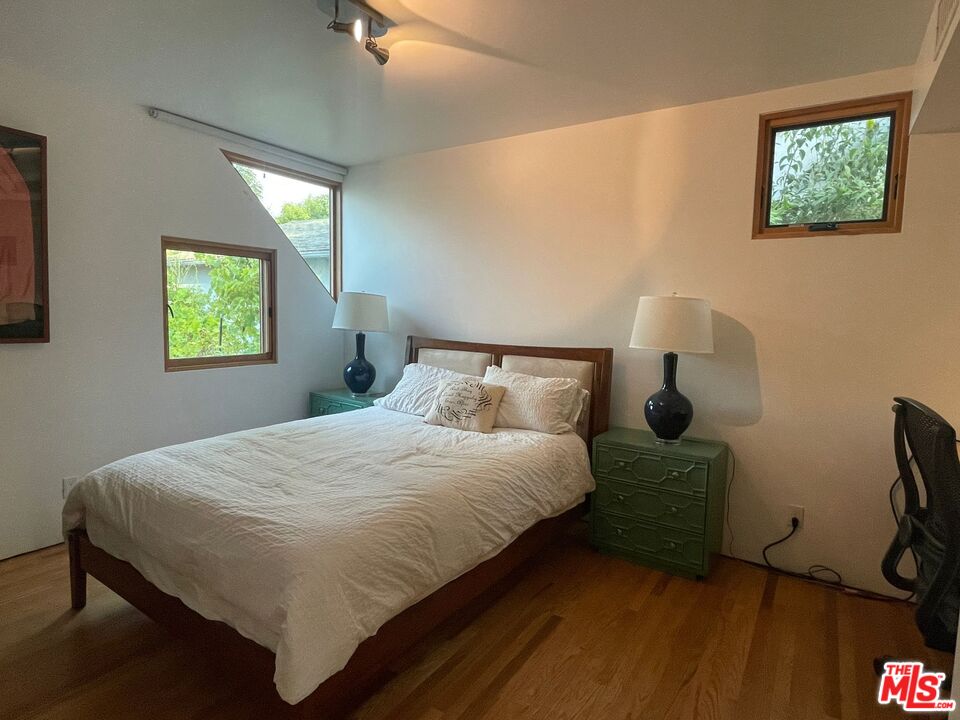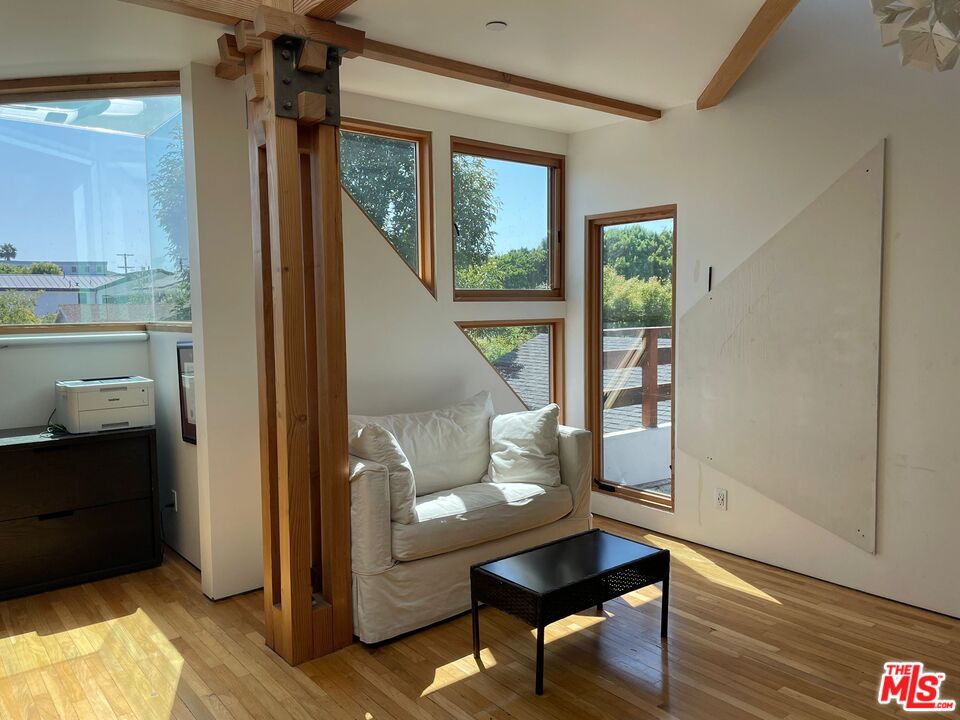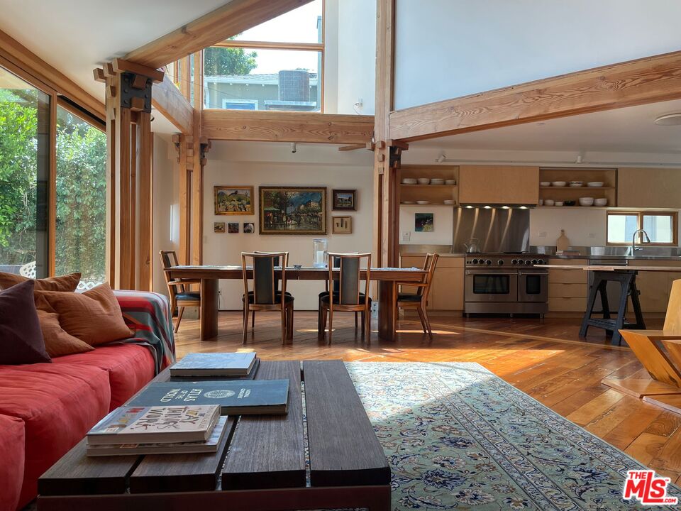 SHORT-TERM SUMMER RENTAL ONLY. AVAILABLE JUNE 20 TO AUGUST 17. Furnished Sunset Park architectural home available for short-term summer lease. Designed by renowned FAIA architect David Sellers, this residence features high ceilings, abundant natural light, and seamless indoor-outdoor living. Enter through glass double doors into a spacious common area with double-height ceilings and reclaimed hardwood floors. The chef's kitchen boasts a Blue Star gas stove, Bosch refrigerator and dishwasher, custom cabinetry, and stainless steel counters, alongside a large seating area with a stunning Scandinavian designer sofa. The living room's glass sliding panels open to a wood deck overlooking a custom pool and jacuzzi.The first floor includes two bedrooms, each with queen beds, and each with its own bathroom. Ascend the unique custom staircase to the second floor, where you'll find a family room with a 60+ inch TV, a library space, an office, a spacious primary bedroom with a large outdoor deck, a smaller bedroom with a twin loft bed and a massive Lego collection, and a charming attic bedroom. Enjoy the private front yard with drought-tolerant landscaping and a custom concrete bench. Situated on a quiet cul-de-sac, this home is adjacent to Marine Park and Penmar Golf Course, walking distance to Rose Ave, and one mile from the beach. Experience the best of Santa Monica and Venice. Note: The garage, primary bedroom closet, and pantry are excluded. The driveway accommodates one car, with ample street parking available.Interested in this Listing?