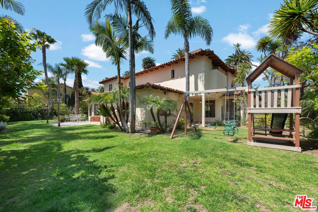 Situated on one of the most coveted streets North of Montana, this original Spanish-style residence offers over 4,300 square feet of living space on an exceptional 15,626 square foot corner lot, just steps from the ocean and Palisades Park. Rich in character, the home features charming architectural details including arched windows, vaulted ceilings, Spanish tile, warm wood accents, and an abundance of natural light throughout. The chef's kitchen is outfitted with Sub-Zero and Miele stainless steel appliances, marble countertops, and generous cabinetry. A breakfast nook adds functionality for daily living, while the formal dining room comfortably accommodates eight and flows into the home's main entertaining areas, complete with a built-in wet bar. The expansive primary suite is a true retreat, complemented by a generously sized bathroom. Additional bedrooms are spacious, with thoughtfully designed bathrooms ideal for family or guests. Outdoors, enjoy the private, flat grassy yard perfect for year-round gatherings, alongside a sparkling dipping pool perfect for year-round SoCal living. A three-car garage and spacious circular driveway provide both convenience and curb appeal. A rare offering on a large corner lot in one of Santa Monica's most sought-after neighborhoods, this is truly a must-see.Interested in this Listing?