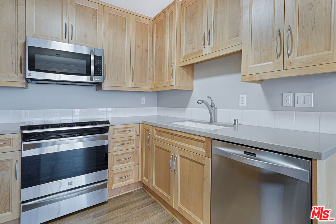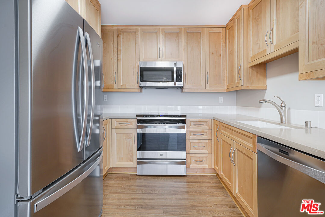 Bright and Spacious 2 Bedroom/2 Bathroom top floor unit with Large Windows, Private Balcony, an Open Floor Plan, Three A/C units, in-unit washer/dryer, and over 1,000 sqft of living space. This unit has just been Completely Renovated and everything is Brand New. Every room in this unit underwent modern upgrades. Prime Santa Monica location just south of Wilshire Blvd and north of Santa Monica Blvd. This immaculately maintained property is walking distance to Erewhon, Bristol Farms, Starbucks, La Scala, Milo & Olive, Ralphs and many of Santa Monica's best restaurants. Large living room has new laminate flooring throughout, modern light fixtures that are LED enabled, classic crown and base moldings and plenty of space for entertaining. The kitchen features brand new stainless steel appliances and hardware, custom real wood cabinetry with plenty of storage space and Caesarstone counters. Bathrooms feature stylish cabinetry, double sinks, mediciInterested in this Listing?