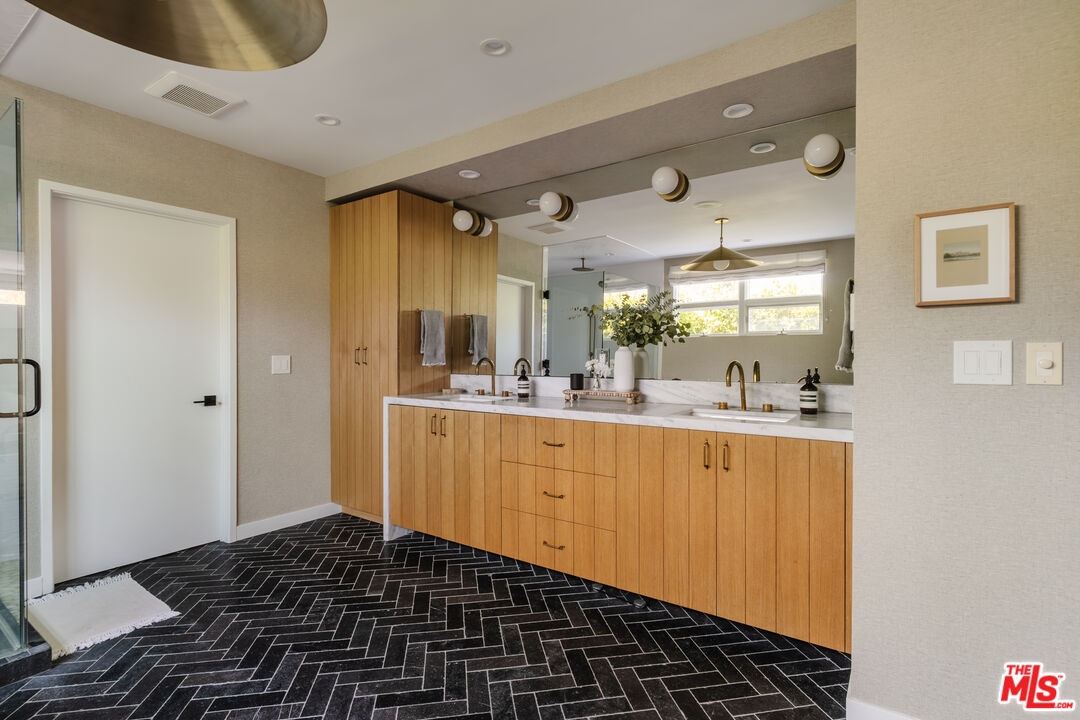 Discover a truly exceptional residence nestled in the enchanting Santa Monica Canyon, an area renowned for its unique character and coveted status among Los Angeles' most discerning residents. This meticulously renovated 4,700 sq. ft. modern home sits on one of the canyon's most magical tree-lined streets, where historic charm meets coastal luxury. Bathed in natural light through expansive windows and skylights, this sophisticated haven offers an unparalleled living experience just moments from the ocean yet secluded in its own tranquil microclimate.The layout is perfect for a family. The primary suite has an expansive spa-like bathroom with heated floors and access to two separate private office spaces, one attached to the spacious rooftop deck with sweeping views and its own powder bath. Two bedrooms on the main level share an adjacent full bath, and a second-story section of the home offers another private two bedrooms and full bath, perfect for an au pair, visiting family members' guest quarters, or additional children's rooms. There is a powder room on the main level for entertaining, and a bonus playroom or family room so toys are kept out of sight. Enjoy the professional chefs kitchen with a double Wolf stove, multiple ovens, numerous Subzero refrigerators, a commercial ice maker and a Miele coffee machine.The basement boasts a commercial-grade gym. Fenced-in grass front yard with swing and private heated pool and spa in the back, plus an outdoor shower for rinsing off after the beach. Just a few minutes' walking distance to the top-rated Canyon Elementary School. A short walk to the beach, the famous Santa Monica stairs, and great shops and restaurants on both Entrada and Montana AveInterested in this Listing?