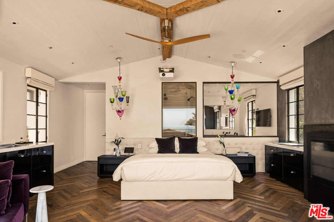 Welcome to Villa Molori, a legacy estate along the famed Palisades Beach Road in Santa Monica. Once graced by legends like Charlie Chaplin and Howard Hughes, this exclusive enclave known as the original "Billionaire's Beach"is now home to tech moguls, film executives, and captains of industry seeking the ultimate coastal retreat. Crafted by Molori Design, this world-class resort-style estate exemplifies coastal luxury. With multiple access points and proximity to first responders, experience unmatched serenity with 24-hour private security and a fully staffed fire station just yards away. From the lushly landscaped grounds and private infinity-edge pool with hot tub and cold plunge, to the open-air stainless steel kitchen by Kalamazoo and dual alfresco lounge areas, every inch of the exterior was designed for both celebration and serenity. Tropical gardens and soaring palms form a green cocoon of privacy while offering unobstructed ocean views that stretch to the horizon.Inside, soaring ceilings and wide-plank chevron oak floors lead you through a gallery of European-inspired luxury. Floor-to-ceiling glass doors open to create united indoor and outdoor spaces, blurring boundaries between architecture and nature. A grand formal living room is framed by Ebony Macassar and Thassos stone, opening to an expansive deck ideal for sunset entertaining. A statement fireplace anchors an outdoor dining area set beneath the stars, wrapped in tall bamboo for ultimate seclusion. The chef's kitchen, inspired by the famed El Bulli restaurant and designed in collaboration with culinary innovator Juan Carlos Ramos, features bespoke cabinetry and Wolf & Sub-Zero appliances. An elegant dining room seats up to 25 guests, flanked by French doors and ocean breezes. Upstairs, the showstopping primary suite is a sanctuary of light, warmth, and view. Vaulted ceilings with exposed beams and a sculptural wood fan crown a space anchored by a sleek fireplace and floor-to-ceiling doors that open to a private balcony. Enjoy watching your best films with a full screen projector and surround speakers. Herringbone floors echo the craftsmanship throughout, while a spa-worthy bath with copper double slipper tub and steam shower completes the retreat. A second primary suite mirrors the luxury, with retractable glass walls and a private terrace with rooftop jacuzzi. Every bedroom feels like a five-star hotel suite, featuring built-in coffee stations, private bars, and luxurious en-suite baths. A state-of-the-art home theater, gym, yoga/pilates studio. The villa also features a modern minimalist steam room with a unique heavy metallic porthole window. The massage room features a Murphy bed and can be turned into a 6th bedroom. A Geothermal radiant serves for the floor & pool heating speaks to the no-expense-spared ethos. Technology meets tranquility with full Control4 home automation, sound-engineered windows and doors, a private garage and generous guest parking. Surrounded by neighbors such as George Rosenthal or David Bonderman, this stretch has long attracted A-listers and visionaries. The home was untouched and not evacuated during recent wildfires testament to its prime location and enduring security. A once-in-a-generation offering on one of the most sought-after shorelines in the world untouched, unrivaled, and ready for your permanent stay.Interested in this Listing?