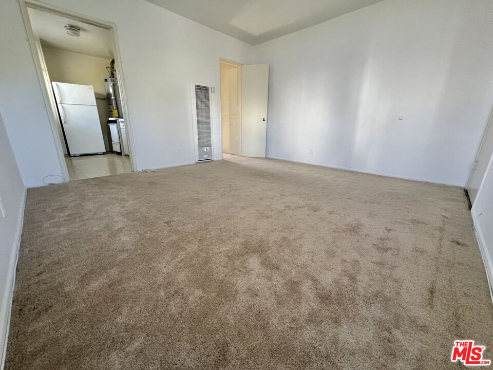 Bright and spacious upstairs studio in the heart of Santa Monica! This charming unit features a generous living area with plush carpet floors, a large full kitchen with ample counter space, a fridge, and a stove/oven. The well-appointed vanity area offers great storage, and the closet includes dual hanging racks for extra convenience. Enjoy a nice enclosed shower and on-site community laundry. Ideally located near shops, cafes, and eateries, with the beach just a short drive away - don't miss this fantastic coastal living opportunity! *One small parking spot available to rent separately for $100/mo*