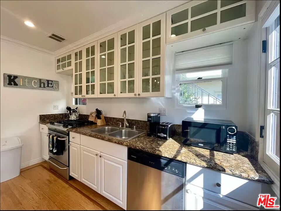 Old world 2Bed/2Bath cottage with no one above or below Front cottage with lots of natural light Private patio access through non-master bedroom Recessed lighting Hardwood floors throughout Tumbled marble bathrooms Granite countertops & stainless steel appliances Beautiful landscaping with shared front yard Great location North of Wilshire and only one block from Montana Ave Laundry in unit Walking distance to all the shops, cafes, & restaurants on Montana Ave Street parking (permit only) Only a few steps to the front door Water/sewer/trash included. Tenant responsible for gas & electric. Pet friendly. 1 yr lease (6 mo lease okay if you are a fire victim).