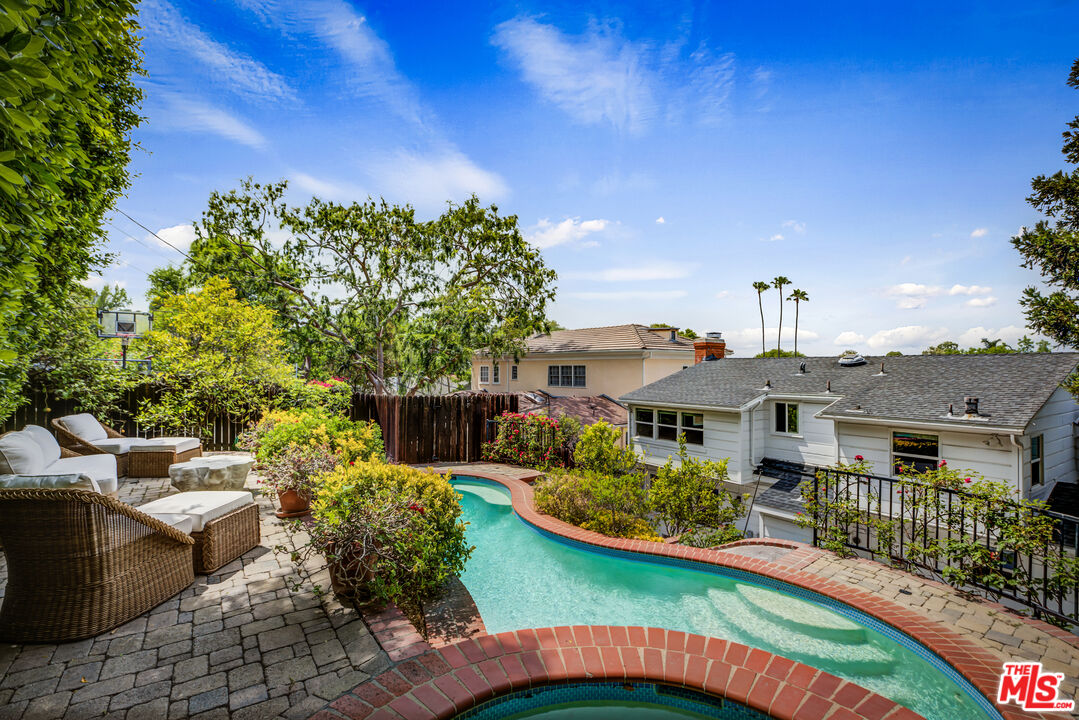 Elevated on Sherman Oaks' idyllic Valley Vista, this bright 3 bed, 3 bath 1940s Traditional-style home is a sanctuary from city living. Enjoy the expansive bay window in the living room, entertain from the banquette dining room, or simply retreat to the den for a quiet night in. The updated kitchen -- with ample cabinetry, Viking stove, quartz countertops, and breakfast bar -- is suited for the home chef, with an outdoor dining area and barbeque grill flanking the space. The primary suite functions as a serene escape, with a walk-in closet, an additional wardrobe wall, and an adjoining bath with skylight. Two additional bedrooms, a full bath, and a bonus room complete the second floor, where mountain and treetop vistas frame the interiors. With summer upon us, find joy and peace in the terraced backyard, with a sparkling pool and spa, and a hedged patio area for privacy. Modern amenities include dual pane windows, updated electrical and HVAC, a 2-car garage with Tesla charger, and a mezzanine storage room. Located within the coveted Dixie Canyon Elementary boundary.Interested in this Listing?