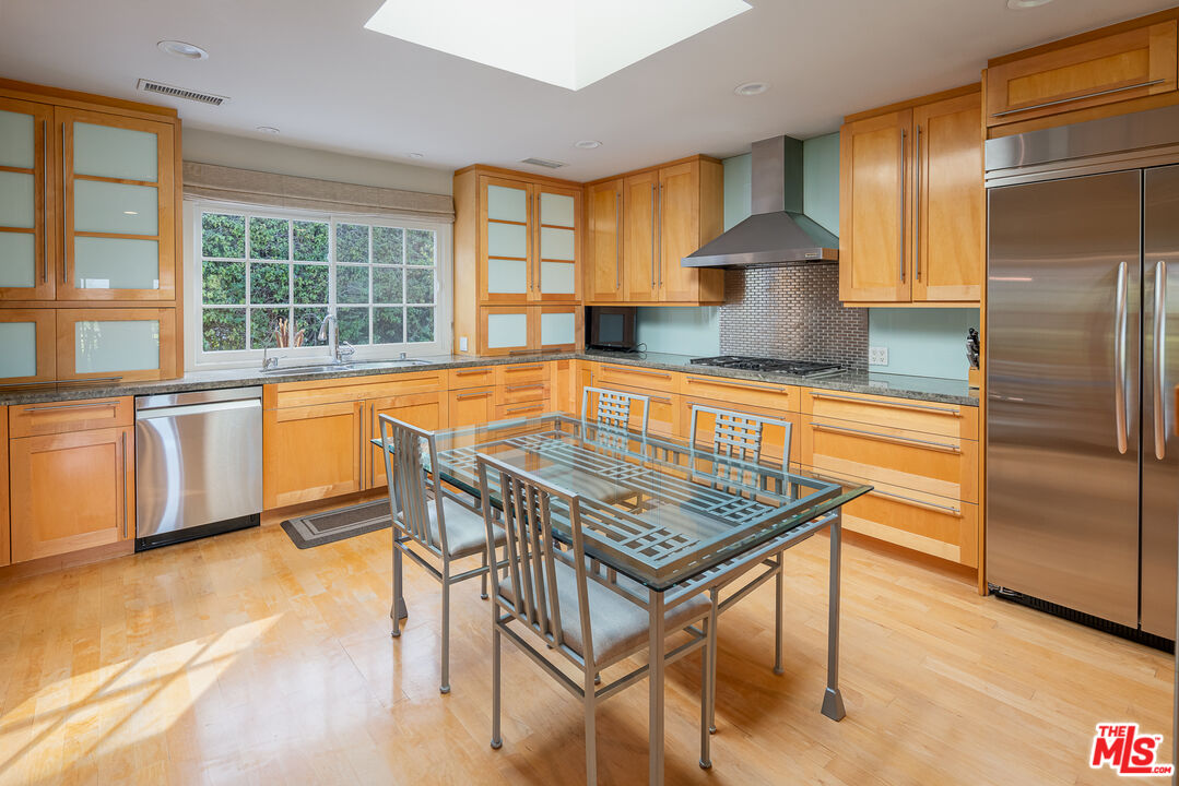 Welcome to this breathtaking and one of kind 4-bedroom, 3.5-bathroom home located in the prestigous neighborhood of Sherman Oaks, south of the boulevard. Set on a quiet street, this gated property offers privacy and security. It evokes tranquility and seclusion yet is in such close proximaty to the boulevard. Serenity envelopes you as you enter this home,which boasts an open and airy layout. The floor plan includes family room and a formal dining room, and additional den downstairs, an inviting living room with a cozy fireplace, and a formal dining room--all designed with modern Asian aesthetics. All of these rooms have large windows that allow you to take in the greenery of the backyard landscape. Ther is a chef's kithchen that flows through French doors to a balcony, where you can dine al fresco and gaze at the awe-inspring mountain views. The outdoor area is an entertainer's dream, where you can host memorable events and features a sport court, a sparkling pool with solar heating, and a built in BBQ area. A quiet Zen garden with the colors of nature, is tucked away on the side of the house for a moment of mediation or a quick escape. The master bedroom windows open to view the Zen garden and awakens you each morning feeling peaceful. Adding to the appeal of this home is a seperate charming guest studio t offer your guests privacy and comfort. The space is large enough to sleep four people, complete with its own bathroom with steam shower and a kitchenette. This studio can also be utlized as a home office. Other notable features include solar panels and a 2-car garage with plenty of storage space.Interested in this Listing?