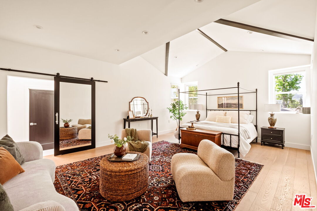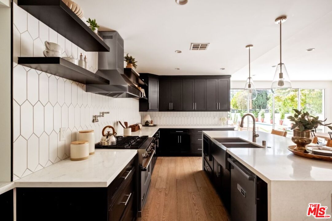 Transitional Contemporary in Prime Sherman Oaks! Flooded with natural light and thoughtfully designed, this stunning home is nestled in one of Sherman Oaks' most sought-after neighborhoods. Boasting a voluminous and expansive floor plan, the residence welcomes you with a dramatic two-story foyer that opens to a grand living room adorned with elegant floor-to-ceiling wainscoting. The heart of the home is the tastefully remodeled chef's kitchen, featuring premium Viking appliances, a generous center island, and a spacious pantry. The kitchen flows seamlessly into the dining and family room, all of which open out to a private entertainer's yard complete with multiple sitting and dining areas, a sparkling pool, and serene hillside views. The main level offers two well-appointed bedrooms, two bathrooms, and a dedicated laundry room. Upstairs, an open loft-style family room leads to three additional bedrooms, including a luxurious primary suite with soaring beam ceilings, a large closet, and a spa-like bathroom with a soaking tub.Additional features include a two-car garage, EV charger, solar panels, and refined finishes throughout. This turnkey residence blends contemporary elegance with functional comfort perfect for modern living in one of the Valley's most desirable locations.Interested in this Listing?