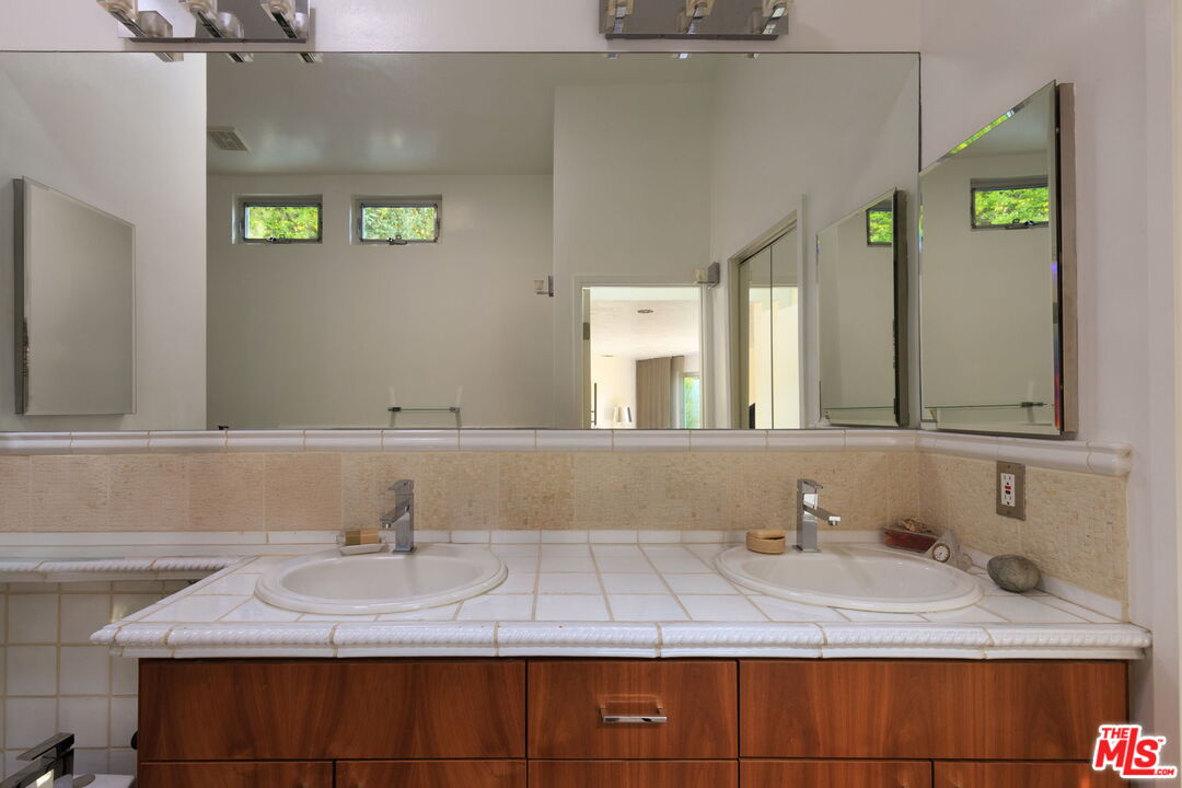 Welcome home to your own private Architectural Oasis in Prime Sherman Oaks. Situated just South of the boulevard, this Architectural Oasis is tucked behind gates and perched above the street on a rare double lot. This exceptional Sherman Oaks retreat offers the perfect balance of refined design and serene outdoor living. Designed by notable architect Dennis McGuire, known for seamlessly integrating structures with their surroundings, the home reflects a quiet elegance and intentional connection to nature. Formerly part of a botanical garden, the grounds are lush and layered, with mature trees: an 80-year-old Melaleuca tree, palm trees and fig trees as well as a Meyer lemon tree. All are centered around a breathtaking saltwater pool, spa, and three cascading waterfalls that serve as a tranquil centerpiece, surrounded by curated outdoor living and entertaining spaces. Back inside the kitchen is the heart of the home, with expansive ceiling heights and natural light throughout. The kitchen is outfitted with Caesarstone countertops, a 6-element Dacor cooktop, Fisher & Paykel refrigerator, convection oven, Bosch dishwasher, and built-in wine fridge perfectly blending form and function. Adjacent you'll find the private outdoor patio with European-style outdoor fireplace and BBQ, remote-controlled patio awning, and built-in Bose sound system. Solar panels are paid off and for convenience there is a Tesla charger located in the garage. Every element of the home has been carefully curated for comfort, sophistication, and connection to the surrounding environment. There are multiple levels that create private living spaces and bedrooms. All with privacy and comfort and updated details. Throughout the house the natural light and 50 windows facilitate in capturing the essence of California living; effortless, and completely private. Welcome to a new elevated way of living.Interested in this Listing?