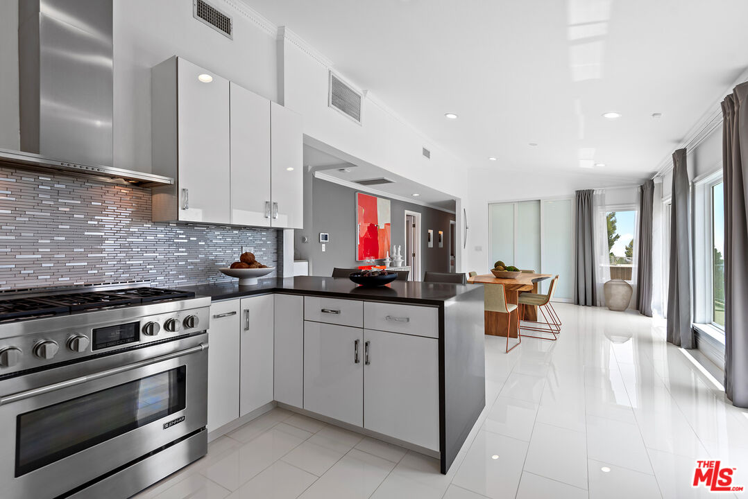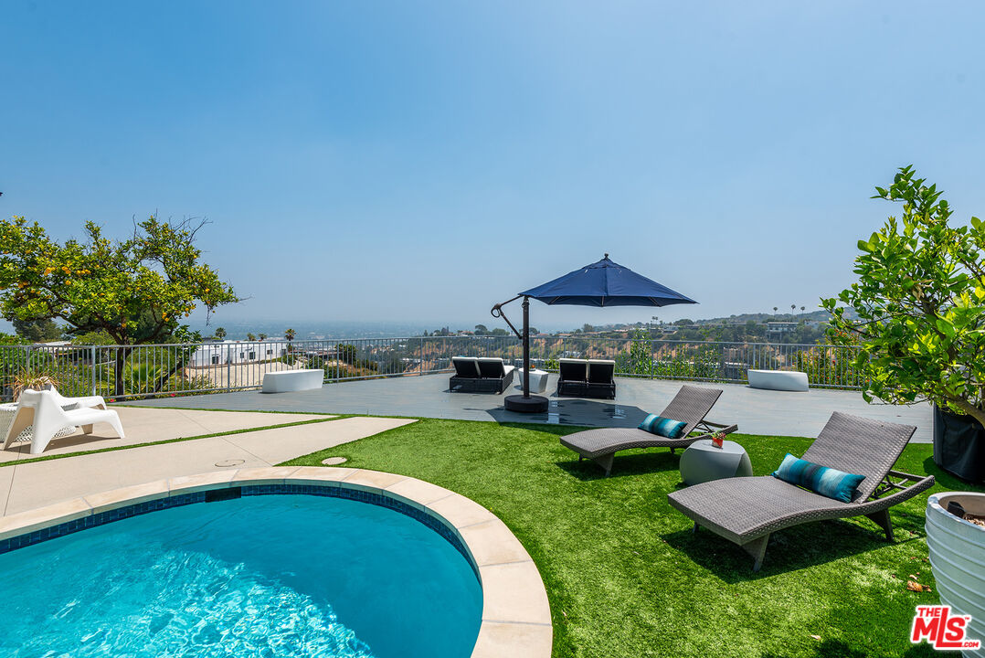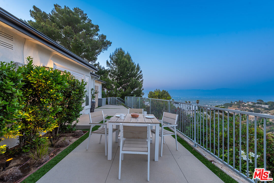Captivating entertainer's home with unobstructed 180-degree views of the Valley, canyons, and mountains from nearly every room. Nestled south of the Boulevard in the prestigious Skyview Estates-on one of Sherman Oaks' most sought-after cul-de-sac streets-this exceptional residence is set on an expansive and ultra-private 17,895 square foot lot. Meticulously remodeled from top to bottom, the home offers 3 bedrooms and 2 bathrooms across 2,774 square feet of refined living space. Step into the elegant main living area, where soaring ceilings and abundant natural light create an airy, inviting ambiance. A sleek, gray modern fireplace acts as a stunning focal point between the living and family rooms. The spacious family room features an entire wall of glass windows showcasing breathtaking views. The chef's kitchen is a culinary delight, equipped with striking white cabinetry, top-of-the-line stainless steel appliances, a contemporary backsplash, and a stylish eat-in bar that opens to the dining space. The oversized dining room boasts a wall of sliding glass doors, opening directly to the backyard for the ultimate indoor-outdoor lifestyle. Retreat to the luxurious primary suite-a serene oasis with gorgeous views, a generous walk-in closet, and a luxurious bath complete with a freestanding tub, oversized glass shower, towel warmer, and two separate vanities. The sprawling backyard is an entertainer's paradise, featuring a sparkling pool and spa, an expansive deck overlooking the magical vistas, and wraparound outdoor space ideal for al fresco dining, lounging, and entertaining. A lower terraced level offers an abundance of fruit trees and a garden bed. Additional highlights include two well appointed guest bedrooms, a gym space, endless windows and natural light, two gated parking spaces, and countless thoughtful upgrades. Privately tucked away yet centrally located, this one-of-a-kind home offers easy access to both the Valley and the Westside and is just a stone's throw from Bel Air, Brentwood, and Beverly Hills.Interested in this Listing?