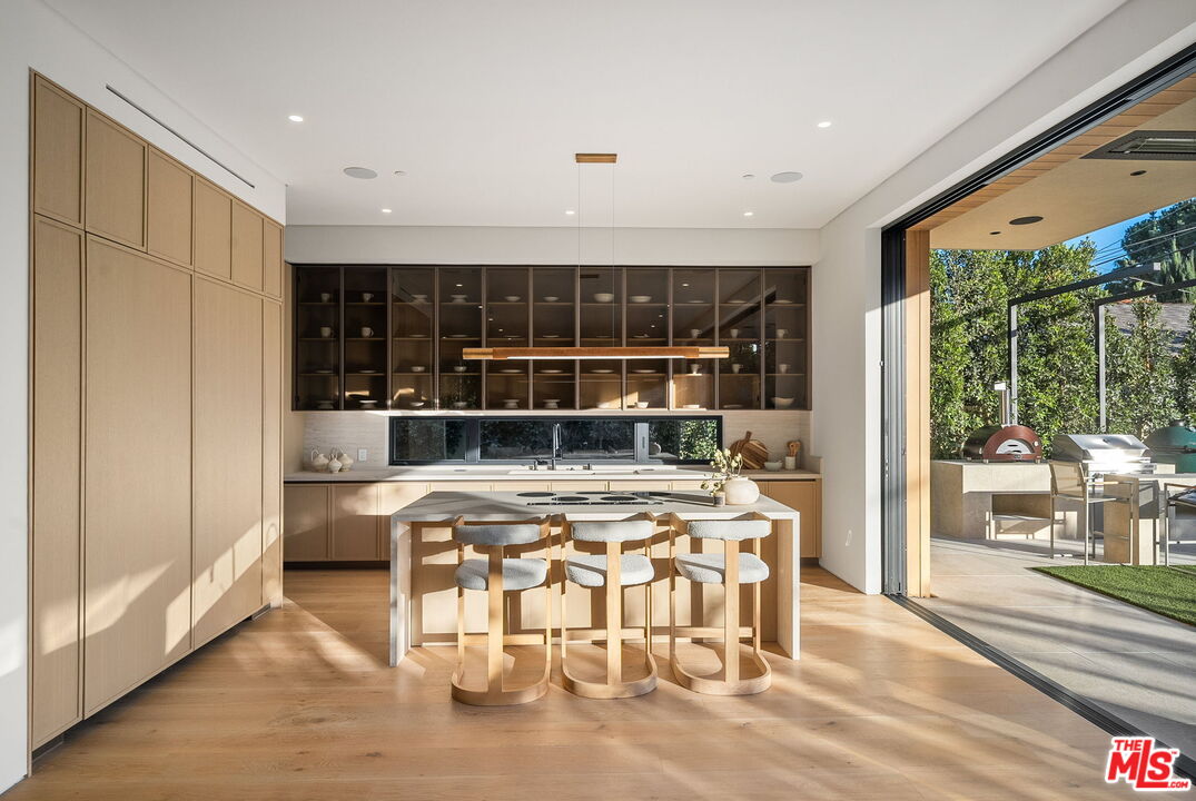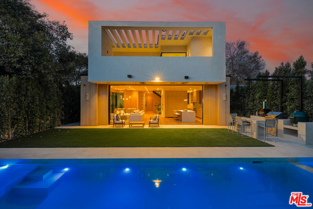 Welcome to this stunning modern new construction built and designed by the well renowned MLR Development. Located in the highly coveted Sherman Oaks pocket of Kester Elementary. Discover unparalleled luxury living at its best with high ceilings, floating staircase and offering 4 spacious bedrooms and 4.5 elegantly designed bathrooms. This architectural masterpiece blends contemporary design with functional living spaces. Step through the grand entryway into an open-concept floor plan that seamlessly integrates the living, dining, and kitchen areas, ideal for entertaining or relaxing. The gourmet kitchen is a chef's dream with custom Italian style cabinetry, a large island, and sleek finishes, featuring state-of-the-art Miele appliances including 2 ovens and a coffee machine. The large butler's pantry offers ample storage, food prep space, and a walk-in pantry. Each of the 4 bedrooms is a private sanctuary, complete with en-suite bathrooms that boast high-end fixtures, modern tile work, and spa-like features. The primary suite is a true retreat with a stone fireplace, offering a spacious walk-in closet and a luxurious bathroom with a soaking stand-alone tub, dual vanities, and a walk-in rain shower. Off of the primary suite is a patio, complete with built-in fireplace. A large upstairs laundry room with sink is both convenient and space efficient. The home is designed for comfort and convenience, with Control-4 smart home technology, surround sound, energy-efficient systems, and abundant natural light pouring in through floor-to-ceiling windows. Outside, the private backyard includes a covered patio, stone fireplace, recessed patio heaters, expansive pool and spa, built-in outdoor barbeque, pizza oven, smoker, and lawn perfect for outdoor dining and entertaining. Located minutes from top-rated schools, shopping, and dining, this home combines modern elegance with everyday practicality. Don't miss the chance to make this stunning property your own.Interested in this Listing?