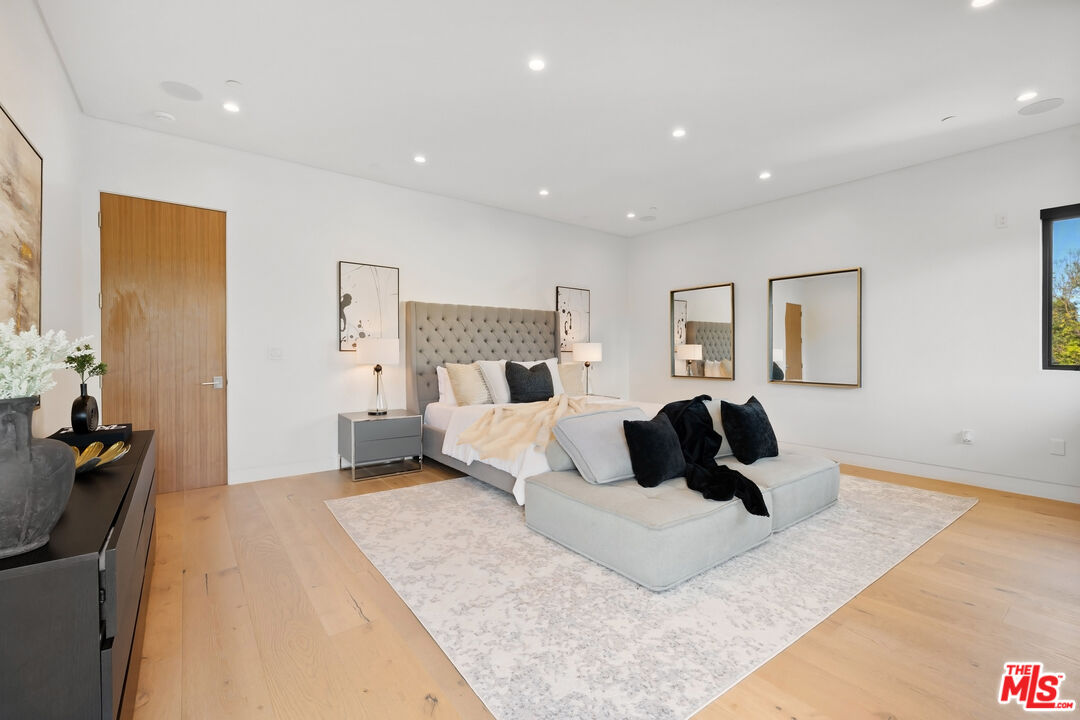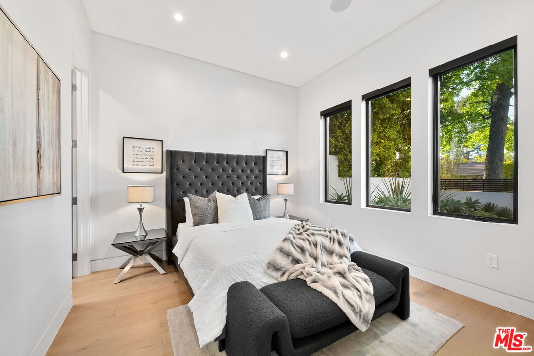 A rare gem nestled on an expansive, nearly 10,000 sq ft flat lot in the highly sought-after Sherman Oaks neighborhood. This stunning Modern Architectural Estate sits on an extra-wide parcel, surrounded by thoughtfully designed landscaping and mature trees. A striking 10-foot entry door welcomes you into soaring ceilings and an open-concept layout adorned with expansive walls of glass, wide-plank European oak flooring, and a custom floating glass staircase. The formal dining room boasts a built-in buffet, paneled walls, a floating ceiling, and sliding glass doors that open to the outdoors. A dramatic living room is centered around a sleek marble slab fireplace, while the state-of-the-art gourmet kitchen features custom cabinetry, quartz countertops, top-of-the-line appliances, and dual islands perfect for entertaining. Cortizo glass pocket doors blur the lines between indoor and outdoor living, leading to a true entertainer's dream: a resort-style backyard complete with a zero-edge pool and spa, fire pit, and a pool house with a full bath. The luxurious primary suite offers a cozy fireplace, private balcony, spacious walk-in closet, and a spa-inspired bathroom. Additional features include electric blinds, a smart home system, custom lighting, and a security system with cameras. Designed with quality craftsmanship and meticulous attention to detail, this home is ideal for both grand entertaining and intimate gatherings.Interested in this Listing?
