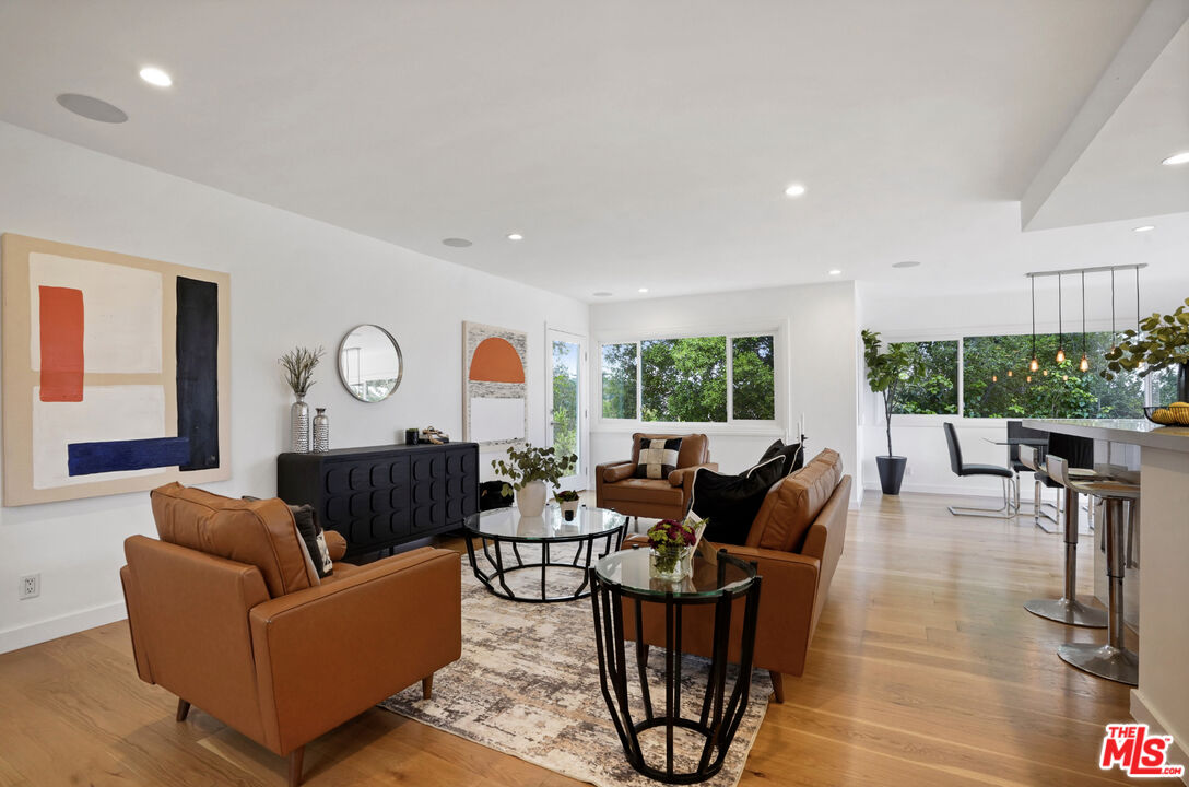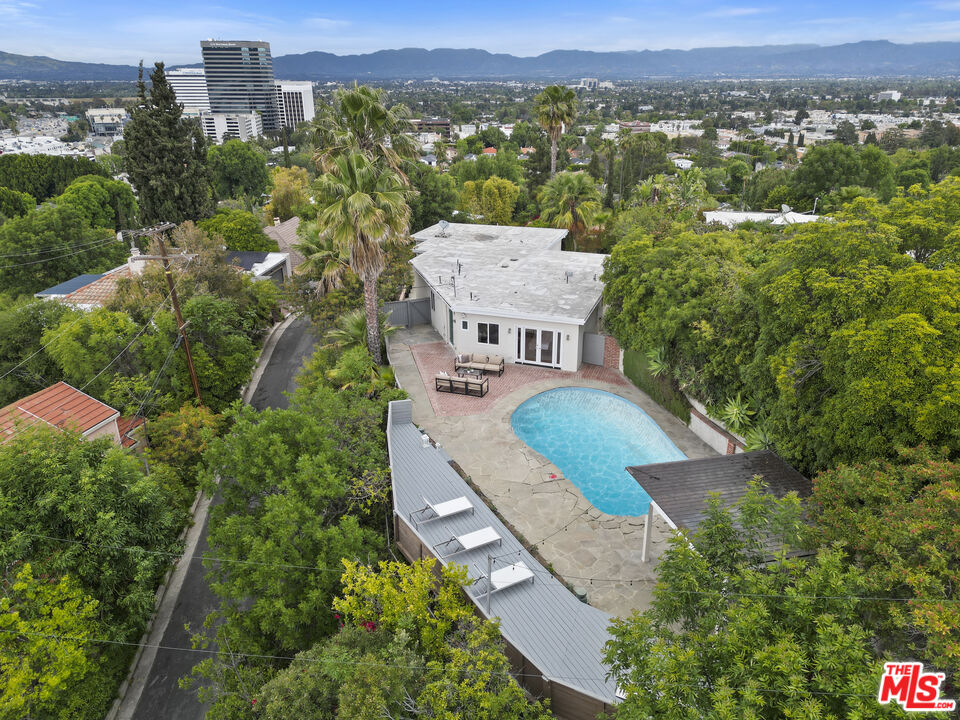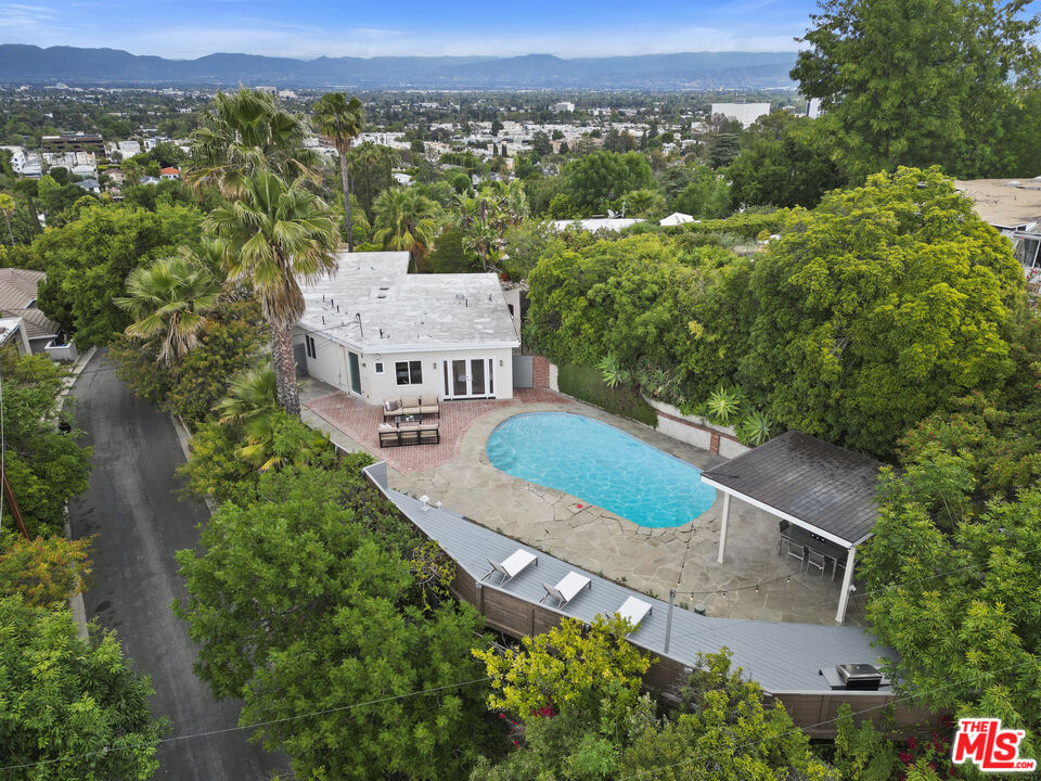 PRIVATE AND SPRAWLING OASIS IN THE HEART OF LOS ANGELES. Tucked away in the serene Sherman Oaks Hills, this recently remodeled single-story private retreat offers the ultimate in California living complete with sweeping views, a private pool, and refined indoor-outdoor flow. Behind gated access, this two-bedroom home is a true entertainer's oasis, boasting an open, sun-drenched floor plan that frames stunning vistas from every room.The recently renovated kitchen is equipped with stainless steel appliances, dual ovens, and a wine fridge, seamlessly opening into the expansive living and dining areas with hardwood floors. Through dramatic accordion glass doors, step onto an inviting private deck with a fire pit perfect for alfresco dining and sunset gatherings.The tranquil primary suite features generous closet space and charming French doors that open directly to the pool and deck area. The luxurious en-suite bath is a spa-inspired sanctuary, complete with a freestanding soaking tub, a steam shower enclosed in floor-to-ceiling glass, and direct access to the poolside for the ultimate retreat experience. Surrounded by lush landscaping, the pool deck offers breathtaking canyon views, a built-in cabana, and a secluded viewing terrace ideal for relaxing or entertaining in style. All this, just moments from Whole Foods, the Sherman Oaks Galleria, and convenient access to the 405 freeway.Interested in this Listing?